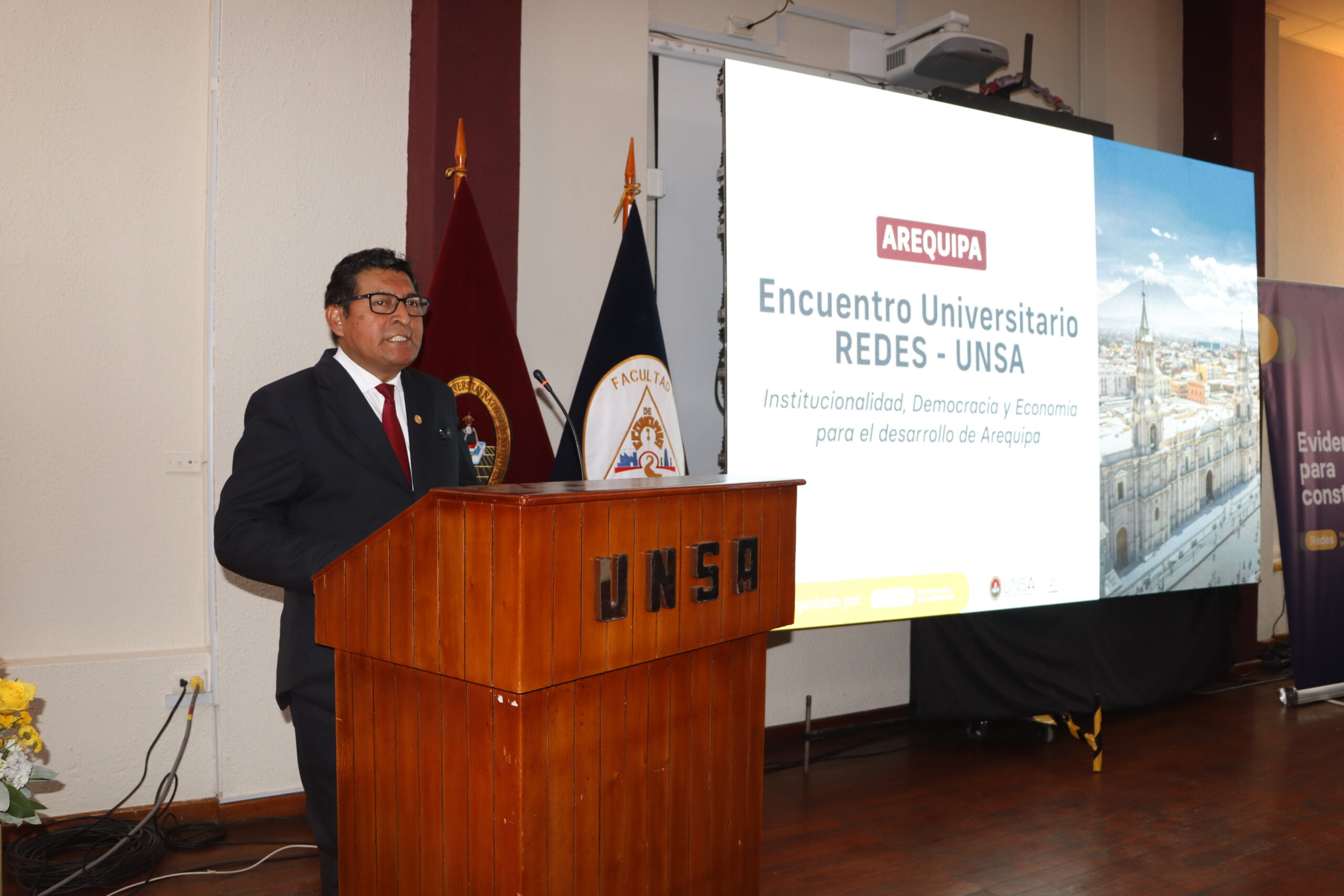 El Dr. Yvi Alencastre Mendoza, docente e integrante de la comisión organizadora del Encuentro Universitario REDES – UNSA: Institucionalidad, Democracia y Economía para el Desarrollo de Arequipa, destacó que esta actividad se realizó por segundo año consecutivo como parte del esfuerzo de vinculación académica con instituciones de prestigio.