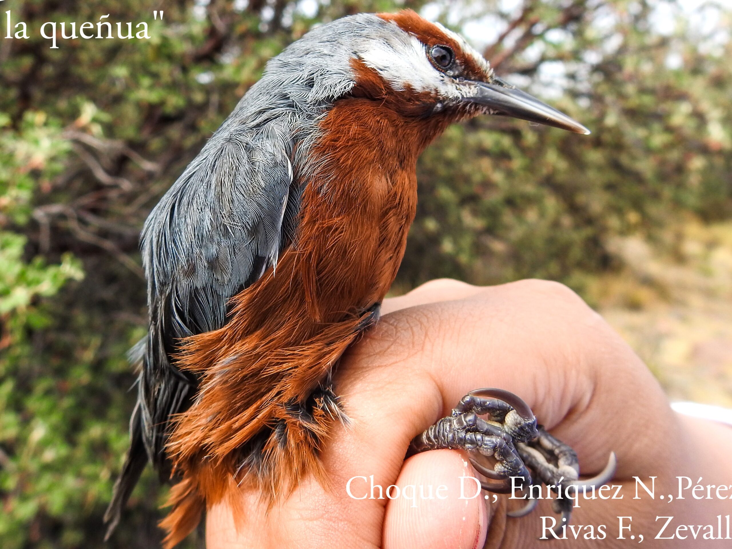 Ave de la queñua (Conirostrum binghami), únicamente se le encuentra en los bosques de Polylepis, su nombre se debe a la coloración canela de su pecho, muy similar al que presentan los troncos de queñua en donde vive.