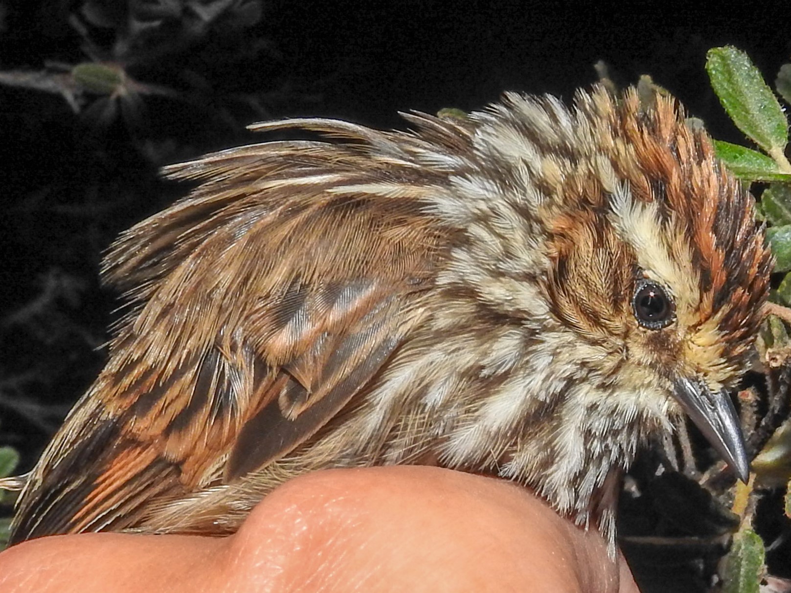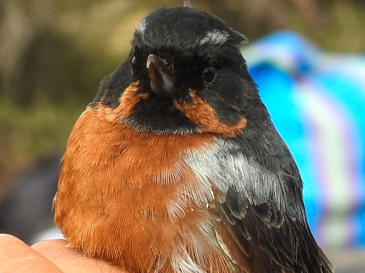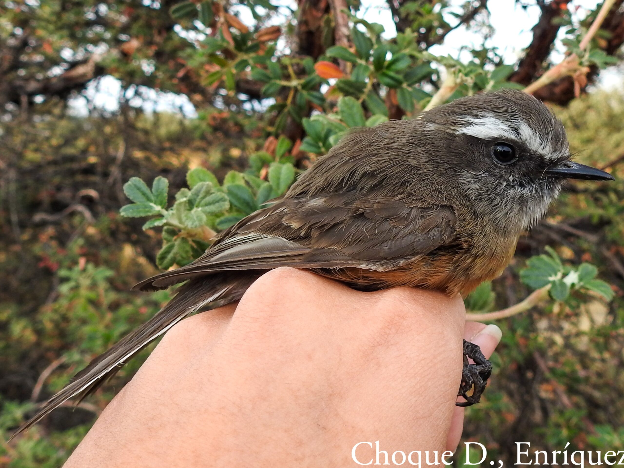 Pitajo canela (Ochthoeca oenanthoides), el cual posee una llamativa franja blanca encima de los ojos y en la base del pico tiene vibrisas, pequeños bigotes que cumplen la función sensorial.