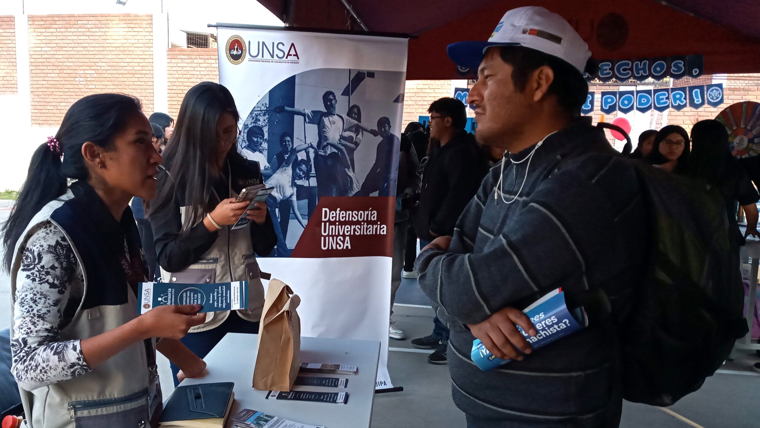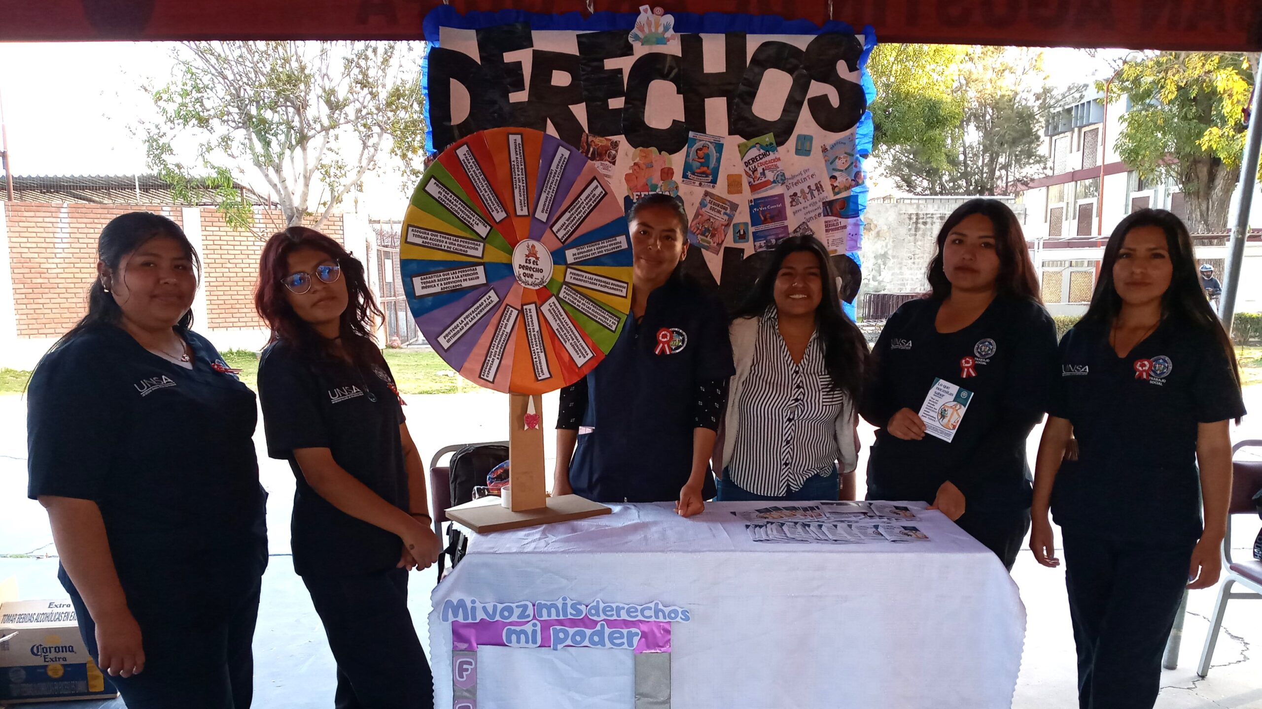 Cuarenta y cinco estudiantes del quinto año de la Escuela Profesional de Trabajo Social de la Facultad de Ciencias Histórico Sociales de la Universidad Nacional de San Agustín de Arequipa (UNSA) llevaron a cabo la feria informativa “Mis Derechos, mi Voz, mi Poder”.