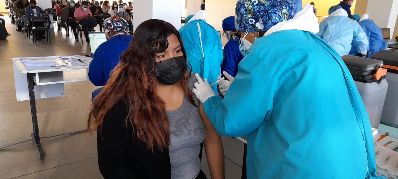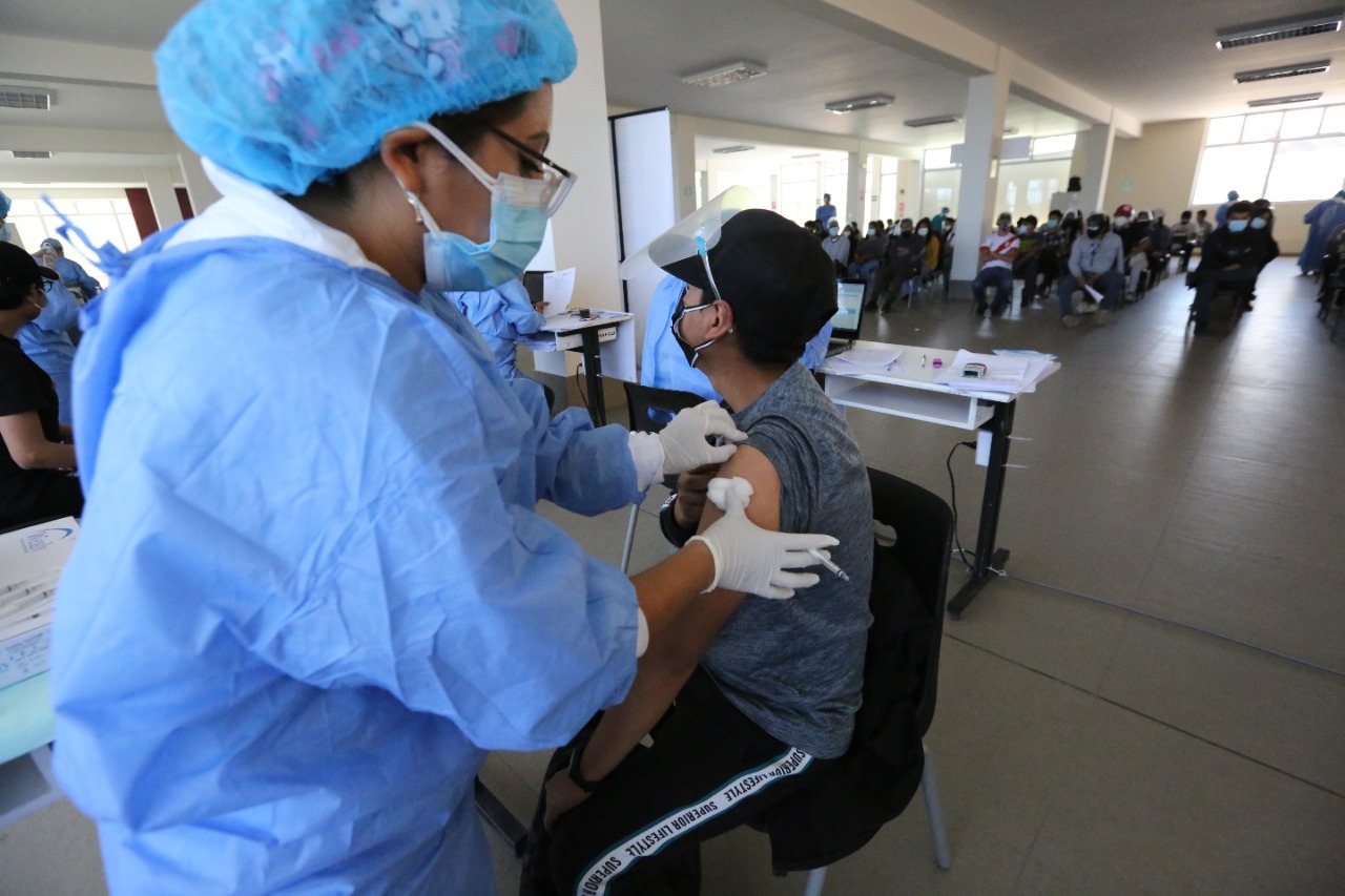 Los primeros en recibir su vacuna hoy domingo 12 de setiembre, fueron los jóvenes Mayte Castilla, Milagros Valdez, Alex Quispe y Dayan Jara, todos ellos estudiantes de la UNSA.