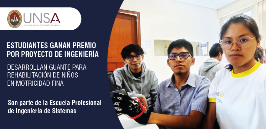 Los jóvenes estudiantes que desarrollaron el proyecto son Valentina Chambilla Perca, André Paredes Quispe, Antony Blanco Trujillo y Christian Raúl Mestas Zegarra. Concursaron a los fondos con su proyecto denominado “Soft robotic glove for fine motor rehabilitation and task-specific training”.