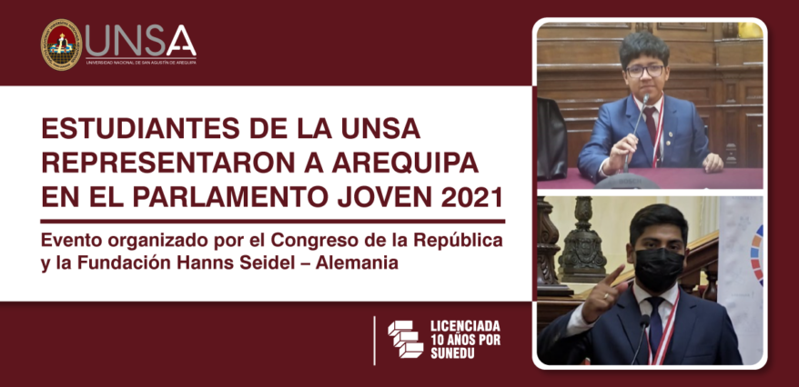 Estudiantes de la Universidad Nacional de San Agustín de Arequipa, fueron seleccionados de entre cientos de participantes por regiones y a nivel nacional para ser parte del programa Parlamento Joven 2021, organizado por el Congreso de la República y auspiciado por la Fundación Hanns Seidel – Alemania.