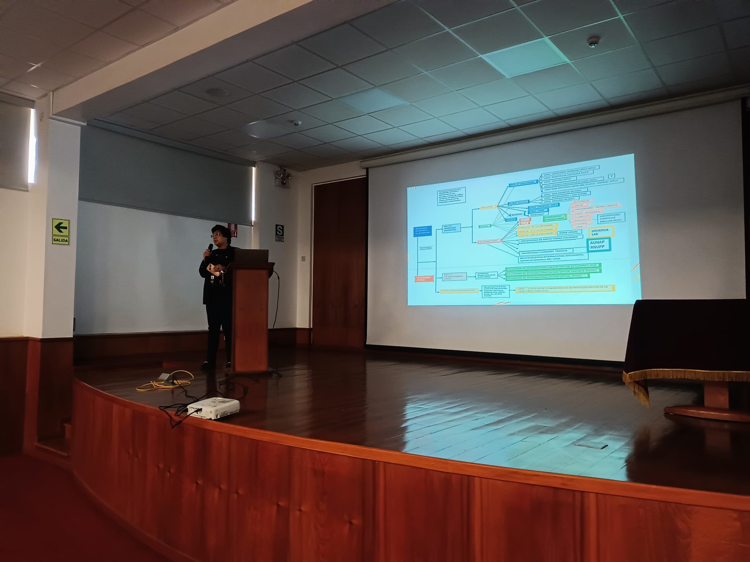 La jefa de la Oficina de Cooperación y Relaciones Internacionales de la UNSA, Dra. María del Pilar Guillén Núñez, acompañó a los jóvenes participantes del CADE, brindando información sobre las oportunidades que ofrece la universidad, mediante sus relaciones con instituciones nacionales e internacionales.