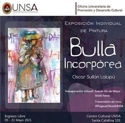 La Exposición Individual de Pintura «Bulla Incorpórea» del artista Oscar Sullón Lalupú, es parte de las exposiciones que viene presentando el Centro Cultural de la UNSA, durante el mes de mayo.
