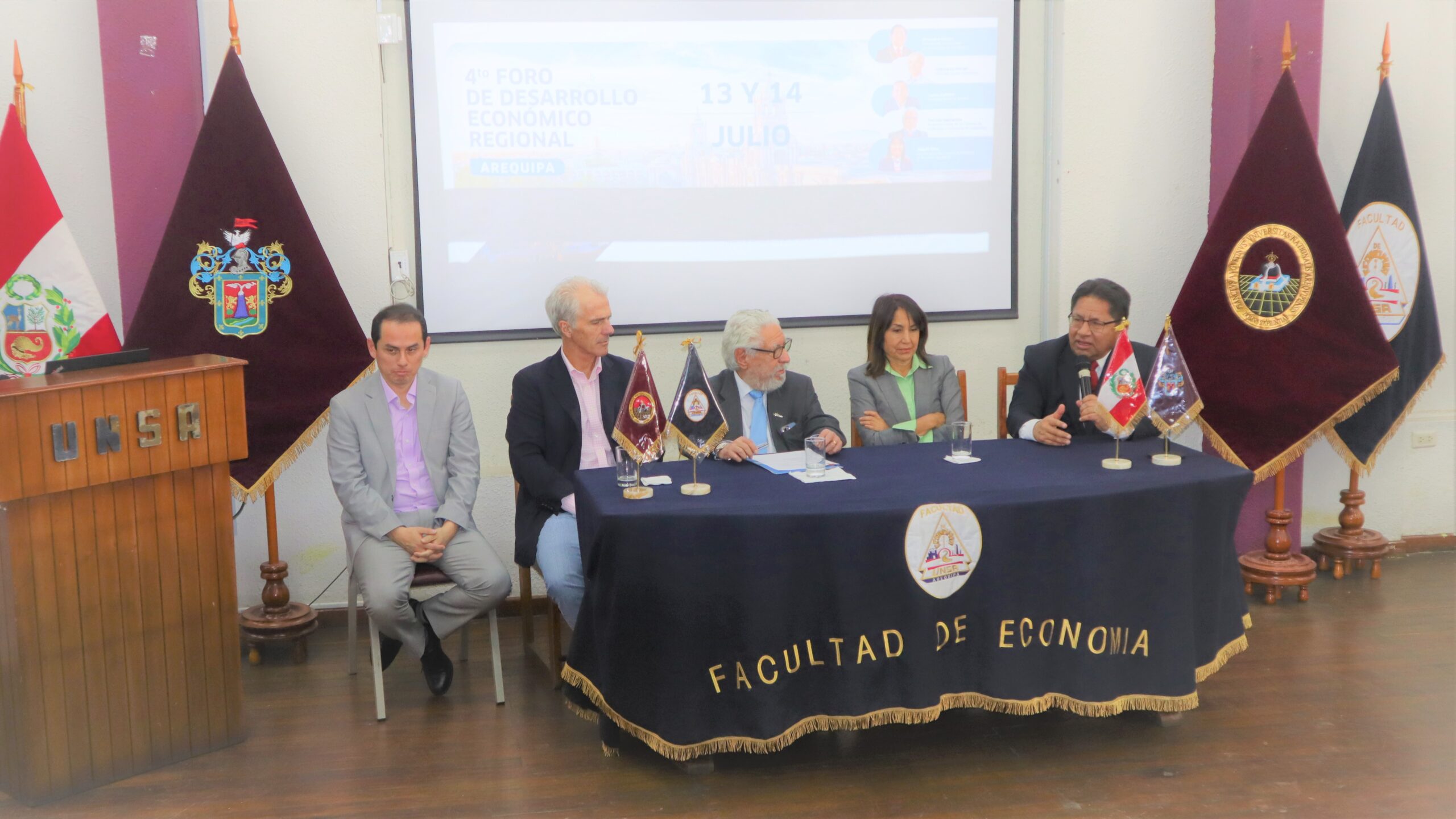 La Universidad Nacional de San Agustín de Arequipa recibió a expertos para analizar y reflexionar en el IV Foro de Desarrollo Económico Regional de Arequipa, organizado por el Instituto Peruano de Economía, la Cámara de Comercio y la Facultad de Economía de la Casa Agustina, realizado los días 13 y 14 de julio.