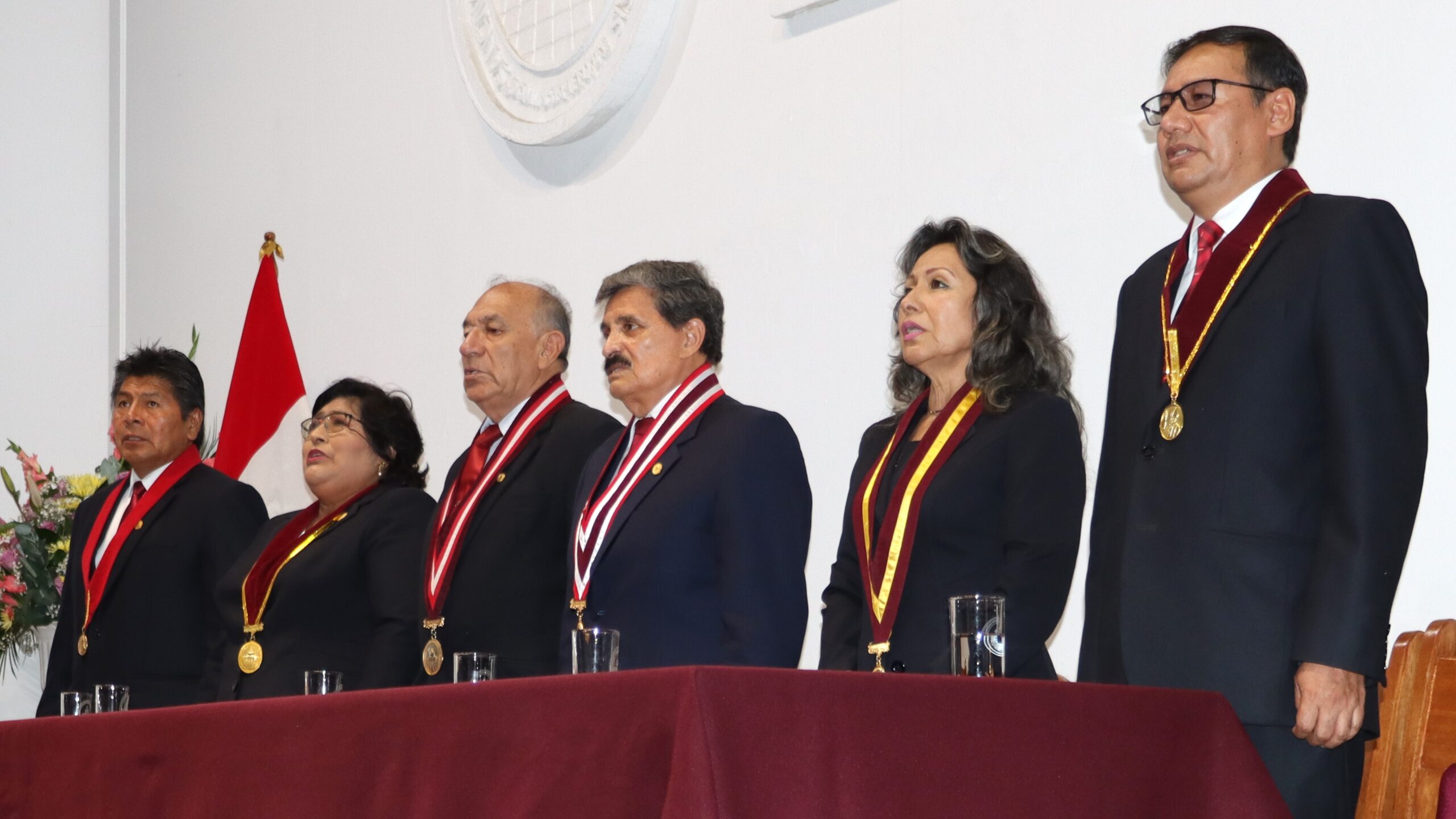 La sesión solemne de aniversario la presidió el rector, Dr. Hugo Jose Rojas Flores y participaron, el Dr. Henry Polanco Cornejo, vicerrector de Investigación, Dra. Ruth Mariza Chirinos Lazo, secretaria general, Dra. Jesús Felicitas Juliano Ramos, decana, Dr. José Zúñiga Calcina, director de Bilogía, demás autoridades, docentes, personal administrativo, estudiantes e invitados.