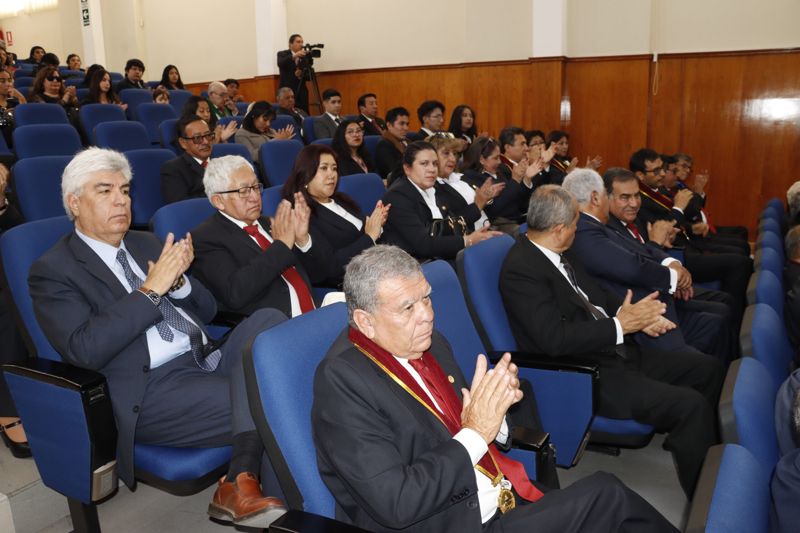 La ceremonia reunió a autoridades como el rector, Dr. Hugo Rojas Flores; el Dr. Luis Cuadros Paz, vicerrector académico; y la secretaria general, Dra. Ruth Maritza Chirinos Lazo; junto a decanos de otras facultades, docentes y estudiantes, presentes en el auditorio de la Facultad de Ciencias de la Educación.