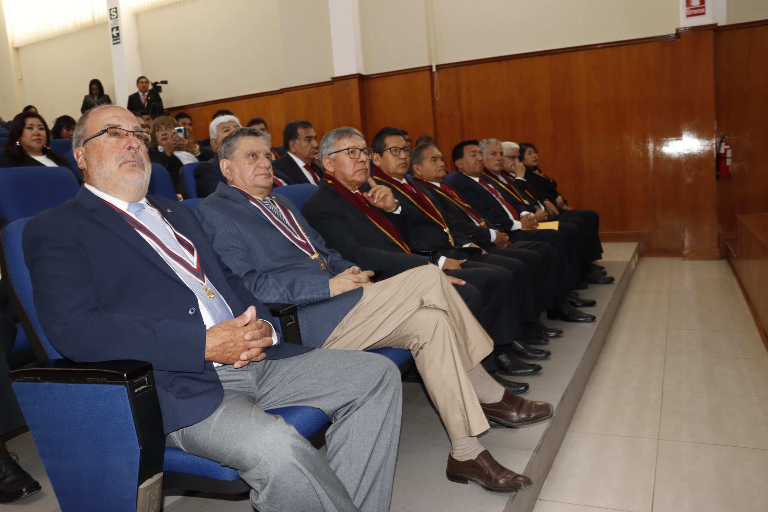 La ceremonia reunió a autoridades como el rector, Dr. Hugo Rojas Flores; el Dr. Luis Cuadros Paz, vicerrector académico; y la secretaria general, Dra. Ruth Maritza Chirinos Lazo; junto a decanos de otras facultades, docentes y estudiantes, presentes en el auditorio de la Facultad de Ciencias de la Educación.