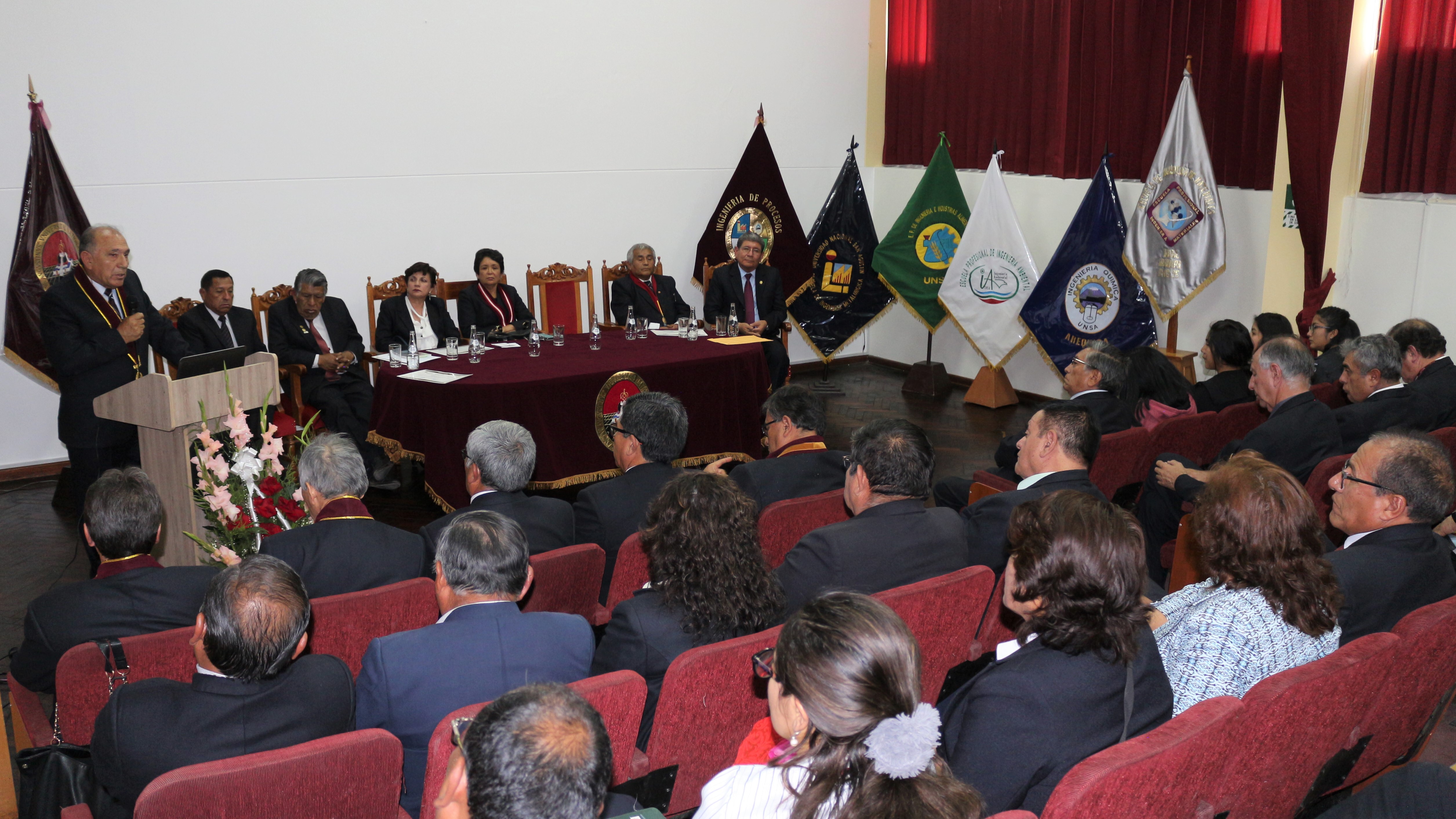 Con la participación de autoridades, docentes, personal administrativo y estudiantes se desarrolló la Sesión Solemne por el 35° Aniversario de creación de la Facultad de Ingeniería de Procesos de la Universidad Nacional de San Agustín de Arequipa, acto protocolar que presidió la Dra. Ana María Gutiérrez Valdivia, Vicerrectora Académica de la Casa Agustina.
