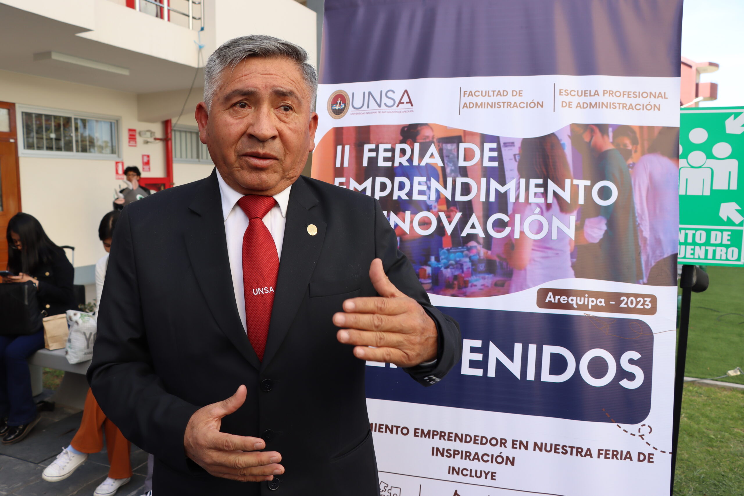 “Vamos a jerarquizar la sostenibilidad, la universidad tiene todos los elementos para poder hacer eso de forma eficaz y competitiva. Las ferias traen precisamente este ambiente, lo que permite compartir todo lo desarrollado por nuestros estudiantes, agregó el Dr. Giovani Zeballos Delgado, director de la Escuela Profesional de Administración.