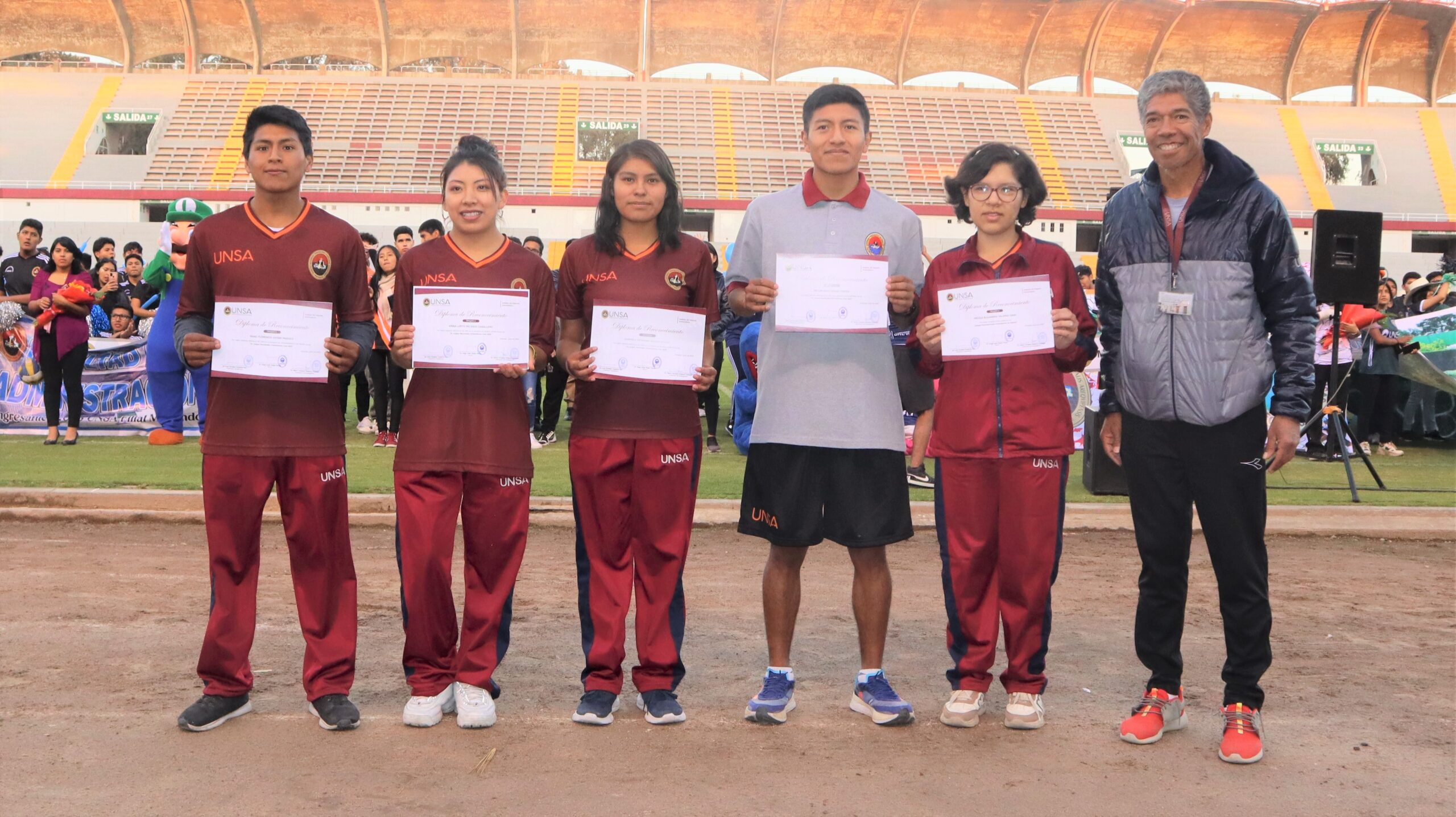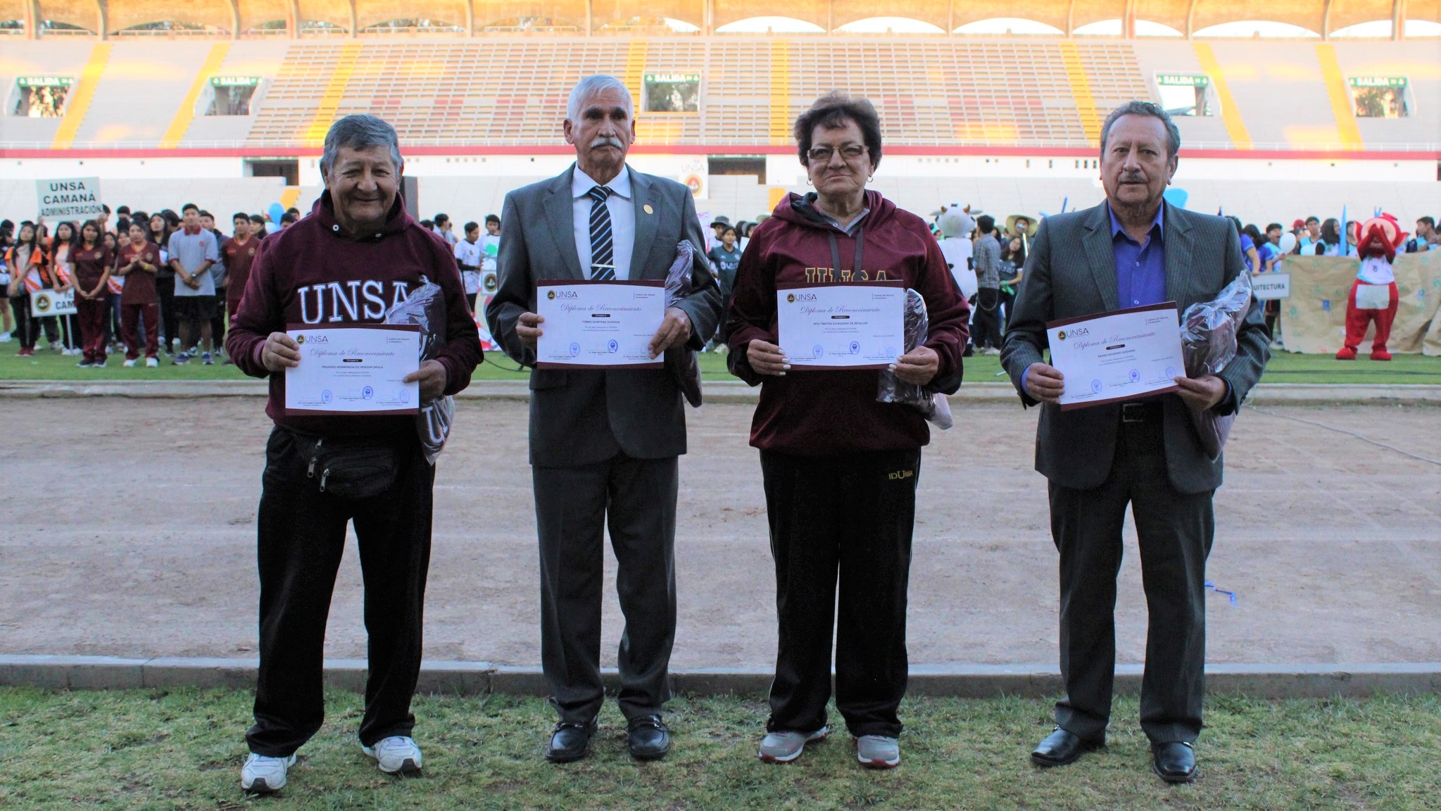 Asimismo, se entregaron reconocimientos a los Profesores cesantes del IDUNSA, Rita Echegaray, Pedro Guevara, Práxides Rendón y Tomás Quintana. De igual manera se entregaron reconocimientos a los deportistas participantes en el traslado de la antorcha olímpica y juramentación.