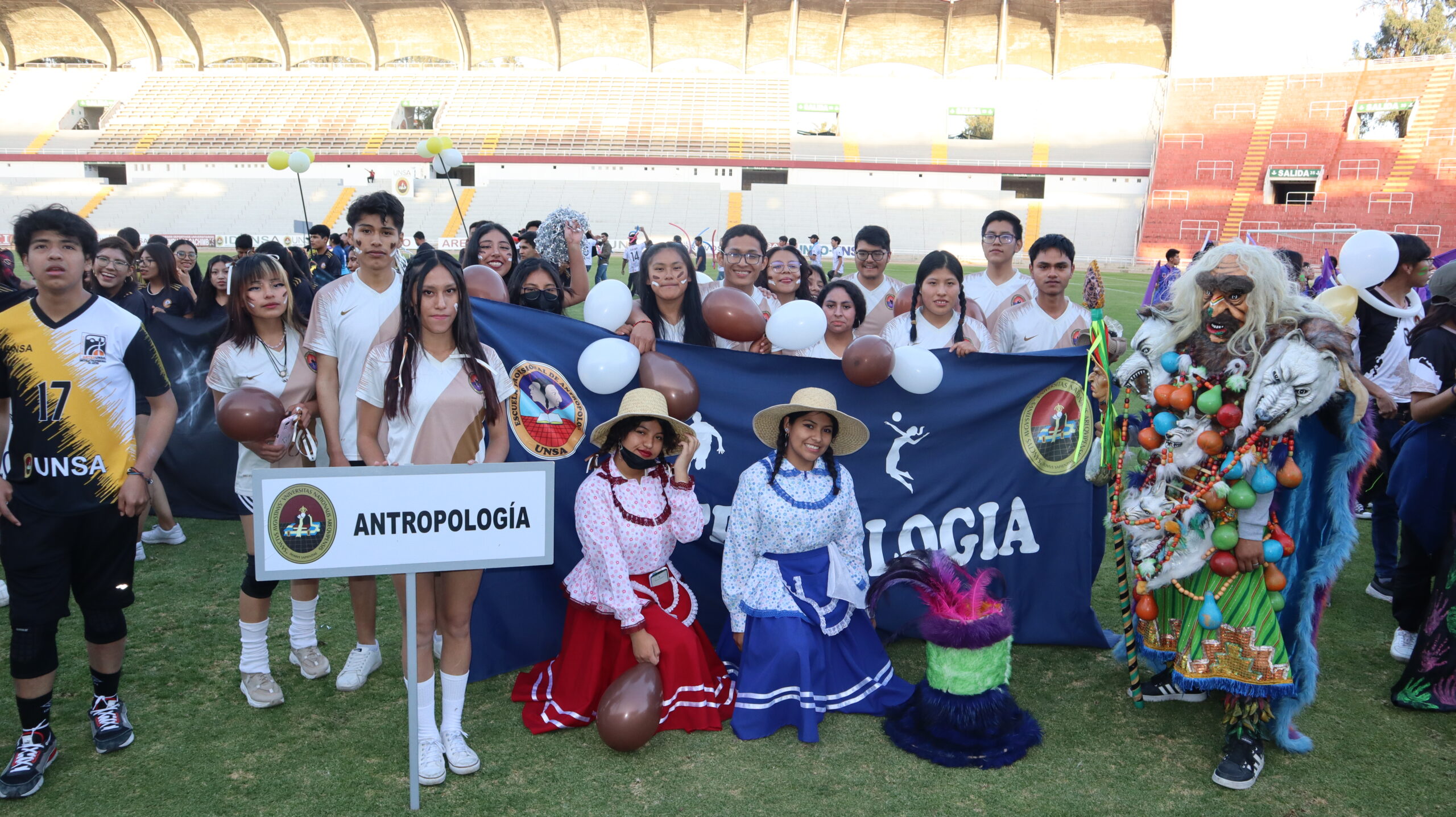 Derroche de energía y creatividad demostraron los agustinos en la Ceremonia de Inauguración que se realizó en el estadio Monumental Virgen de Chapi de la UNSA, con gran ingenio representaron las características de sus carreras profesionales en la presentación de las delegaciones.