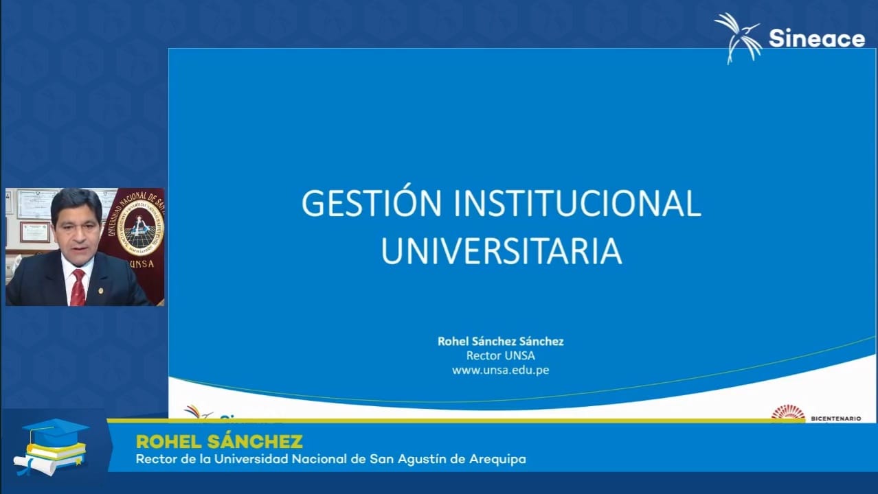 El rector de la Universidad Nacional de San Agustín de Arequipa, Dr. Rohel Sánchez Sánchez, mencionó este punto durante la rueda de preguntas de la “Cuarta reunión de trabajo sobre la propuesta de Modelo de Calidad para la Acreditación Institucional de Universidades”, realizado por el SINEACE.La UNSA es la única universidad nacional fuera de Lima en obtener el mayor periodo de licenciamiento por parte de SUNEDU, con una vigencia de 10 años. Este logro se obtuvo mediante gestiones administrativas exitosas, mejora de la malla curricular, inversión en investigación, infraestructura, internacionalización y otros aspectos.