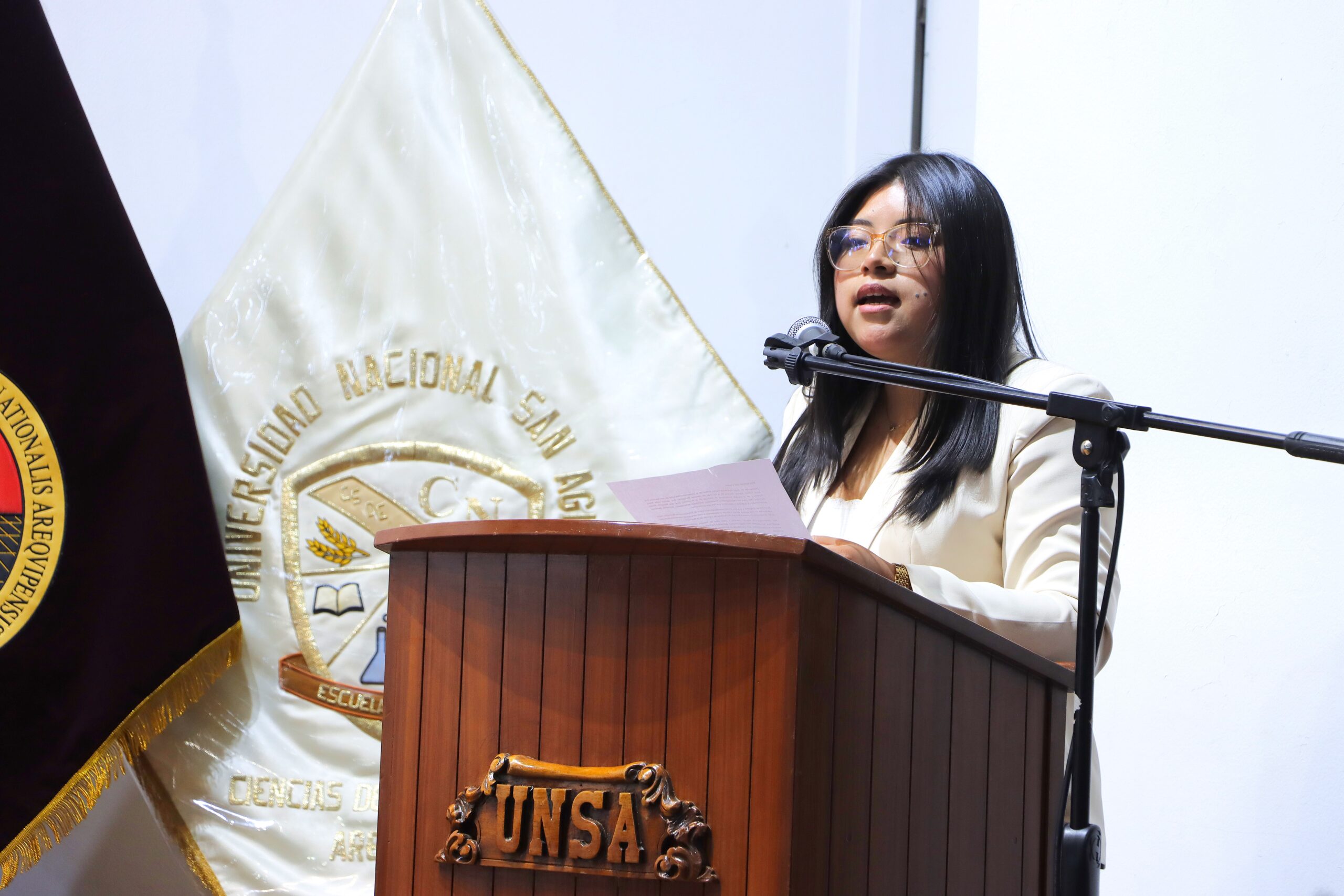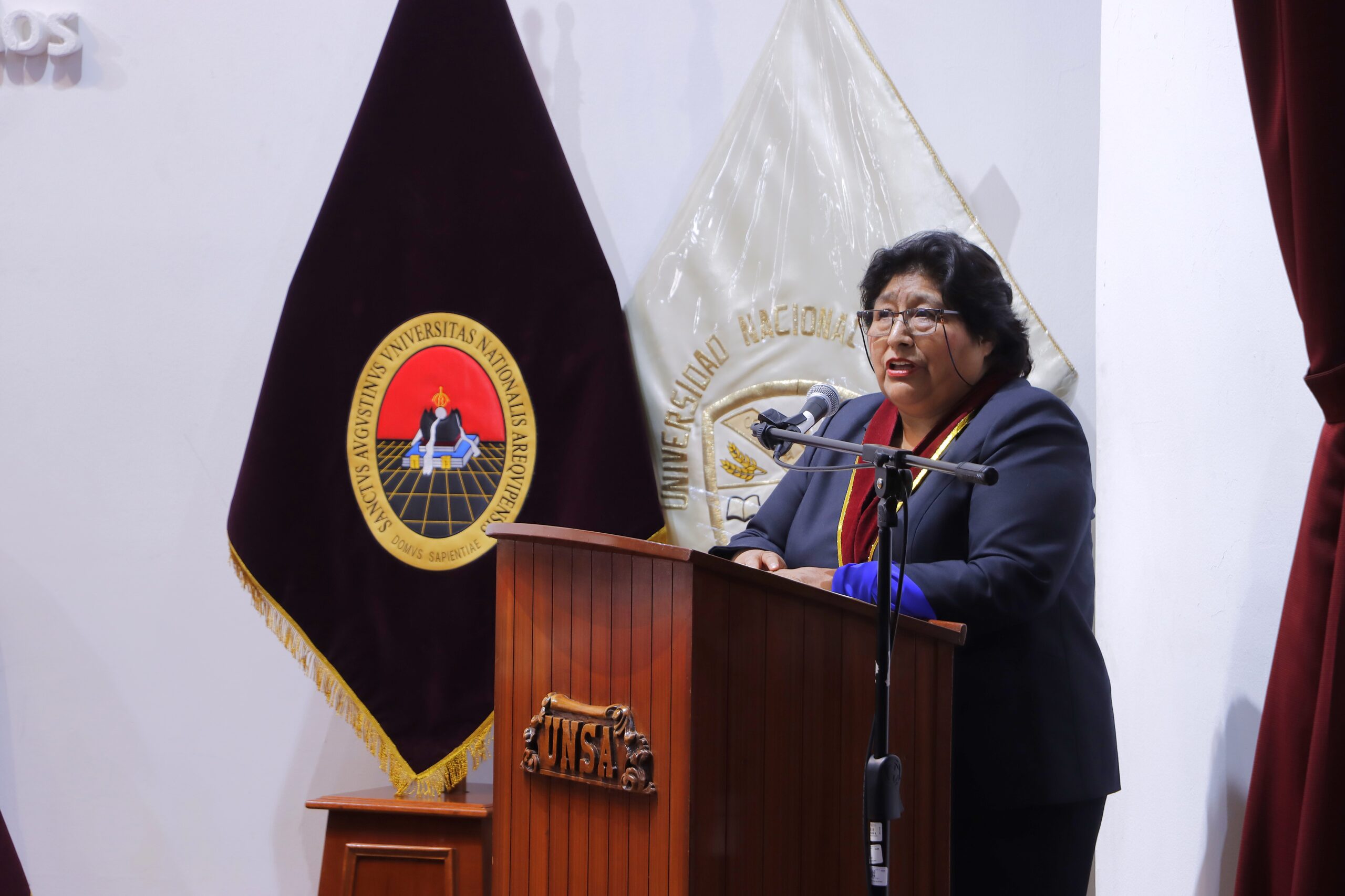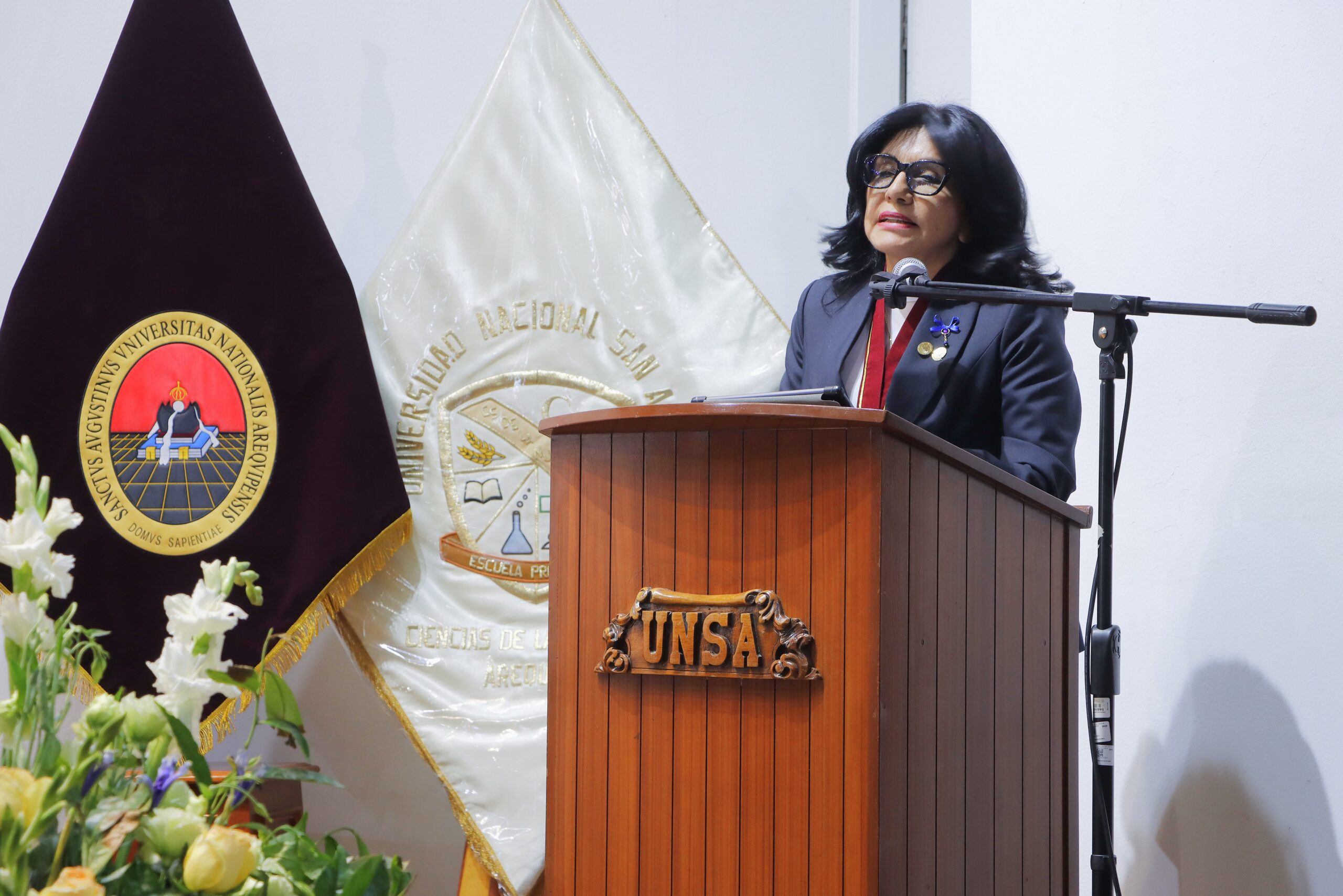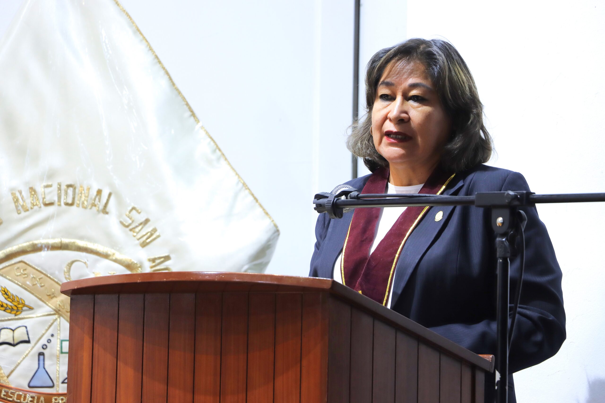 Durante la sesión solemne por el aniversario, la Dra. Jesús Felicitas Juliano Ramos, decana de la Facultad de Ciencias Biológicas, resaltó el papel clave de las profesionales en la reducción de los índices de desnutrición y anemia, y subrayó la necesidad de continuar impulsando la investigación como herramienta de transformación social.