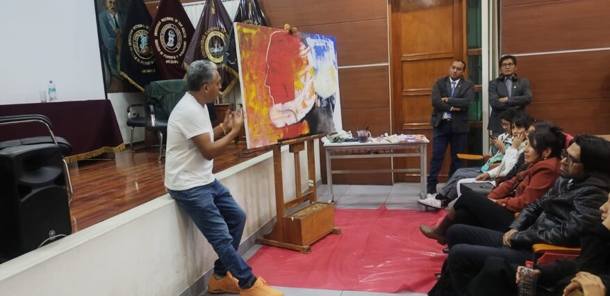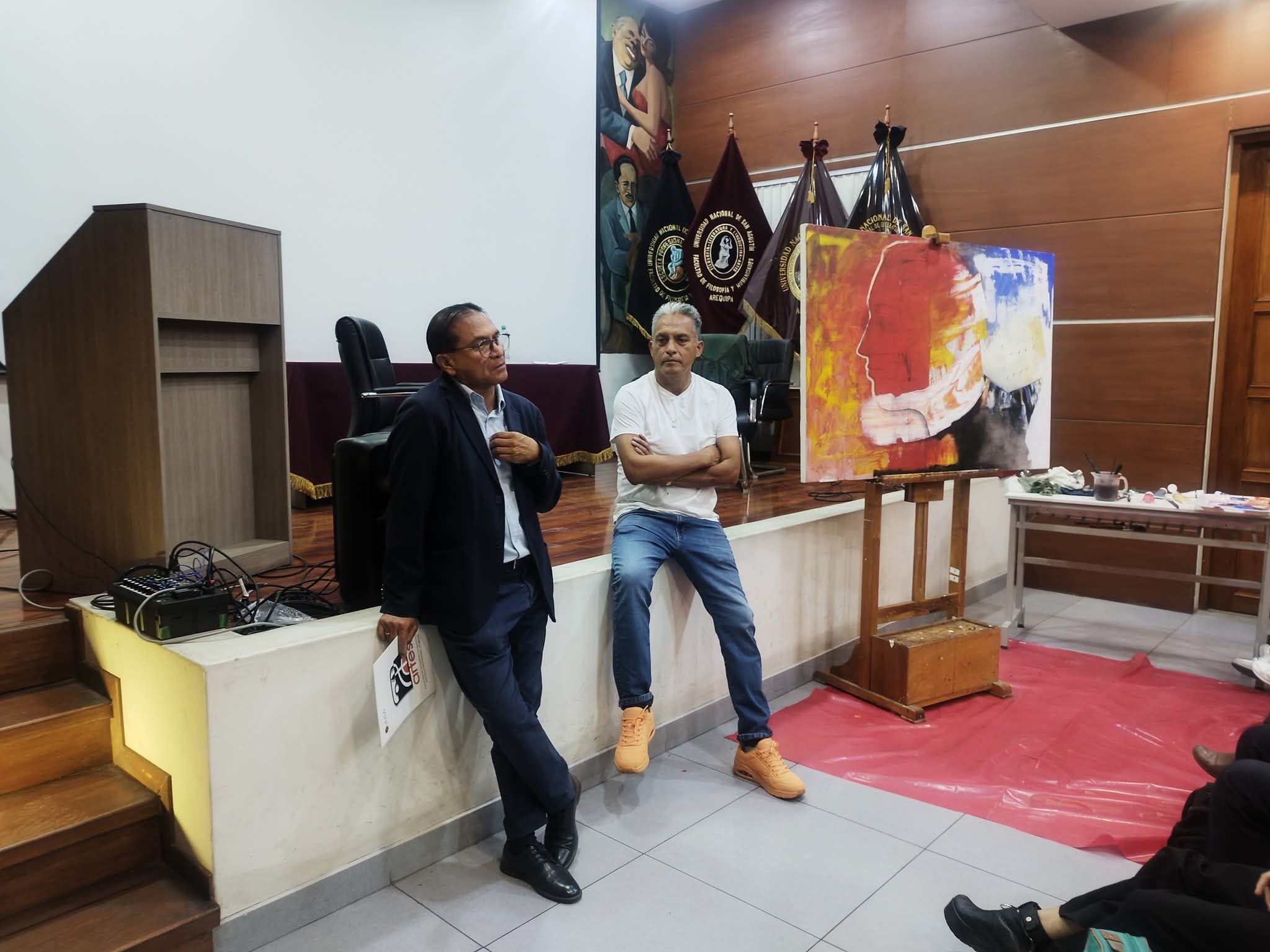 La Universidad Nacional de San Agustín de Arequipa (UNSA) se convirtió en un vibrante taller artístico gracias a la visita del renombrado artista plástico Hernán Sosa. El evento, organizado por la Facultad de Filosofía y Humanidades, ofreció un conversatorio enriquecedor y una demostración artística en vivo que culminó con la creación de una pintura ante los ojos de los asistentes.