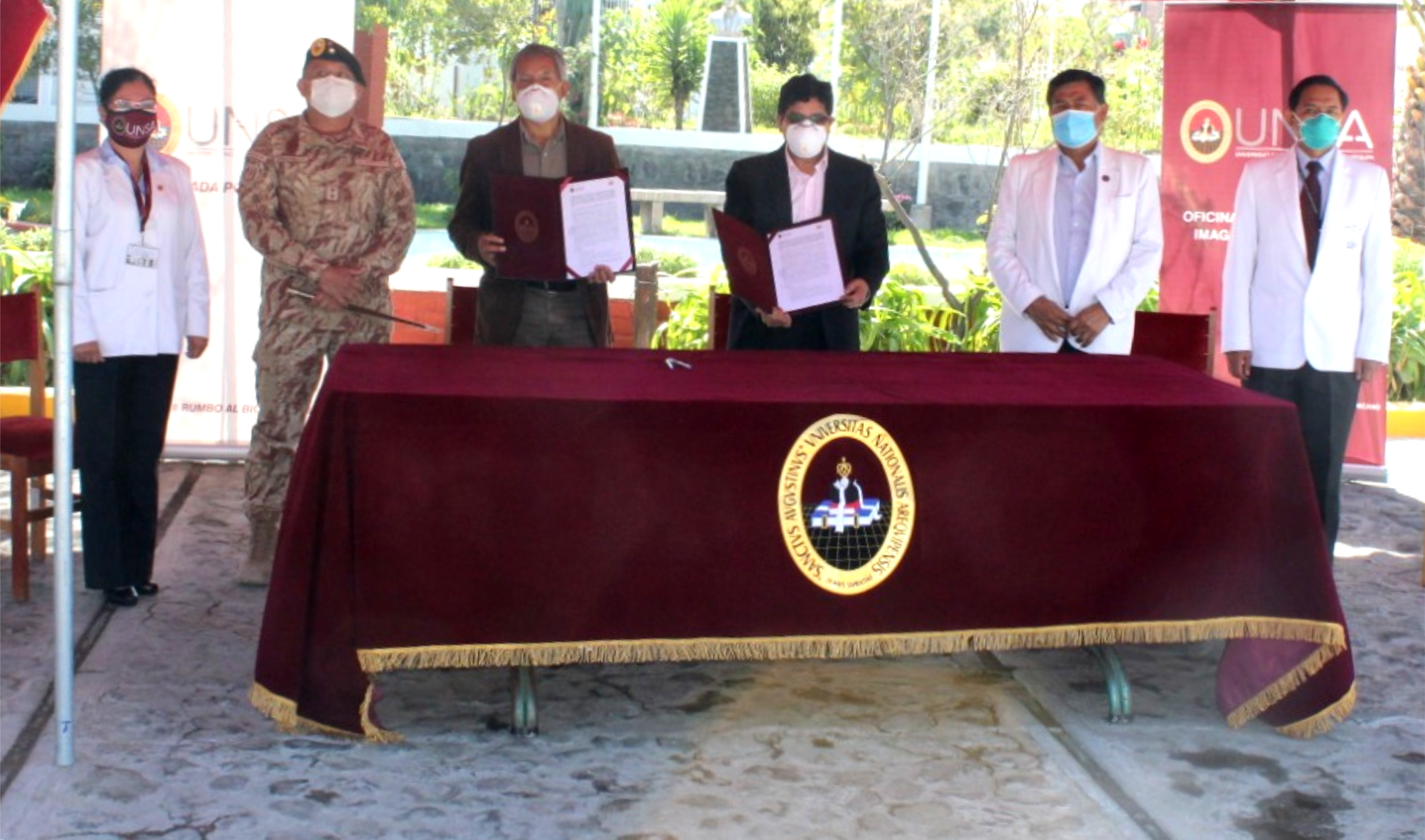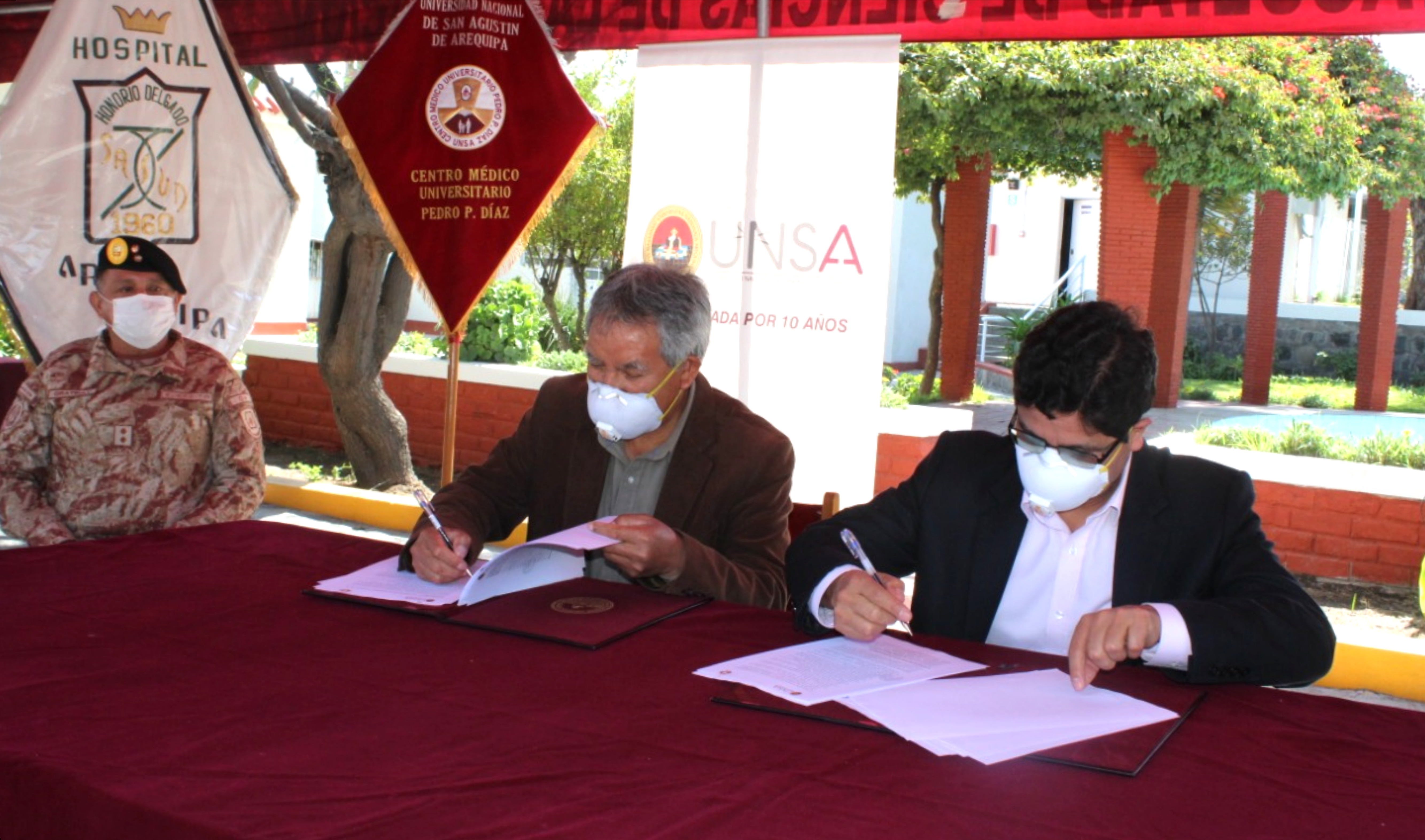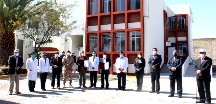 En la firma del convenio también participaron el director del Hospital Honorio Delgado, Dr. Richard Hernández, gerente de Salud, Dr. Leonardo Chirinos,  el jefe del Comando COVID-19  Gral. Edward Gratelly Silva, la Directora del Hospital Universitario Pedro P Díaz, Dra. Magnolia Sierra Delgado, entre otras autoridades.