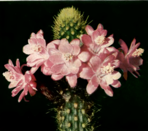 Fig. 1. Borzicactus icosagonus ssp. roseiflorus, tratado primeramente como Akersia roseiflora. Tomado de Backeberg, 1976. Imagen original de Buining.