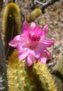 Fig. 4. Detalle de la flor de Borzicactus icosagonus ssp. roseiflorus (Buining) G. Charles. Lugar: Región tumbesina, Ecuador. Fotografía: Marco Salazar.
