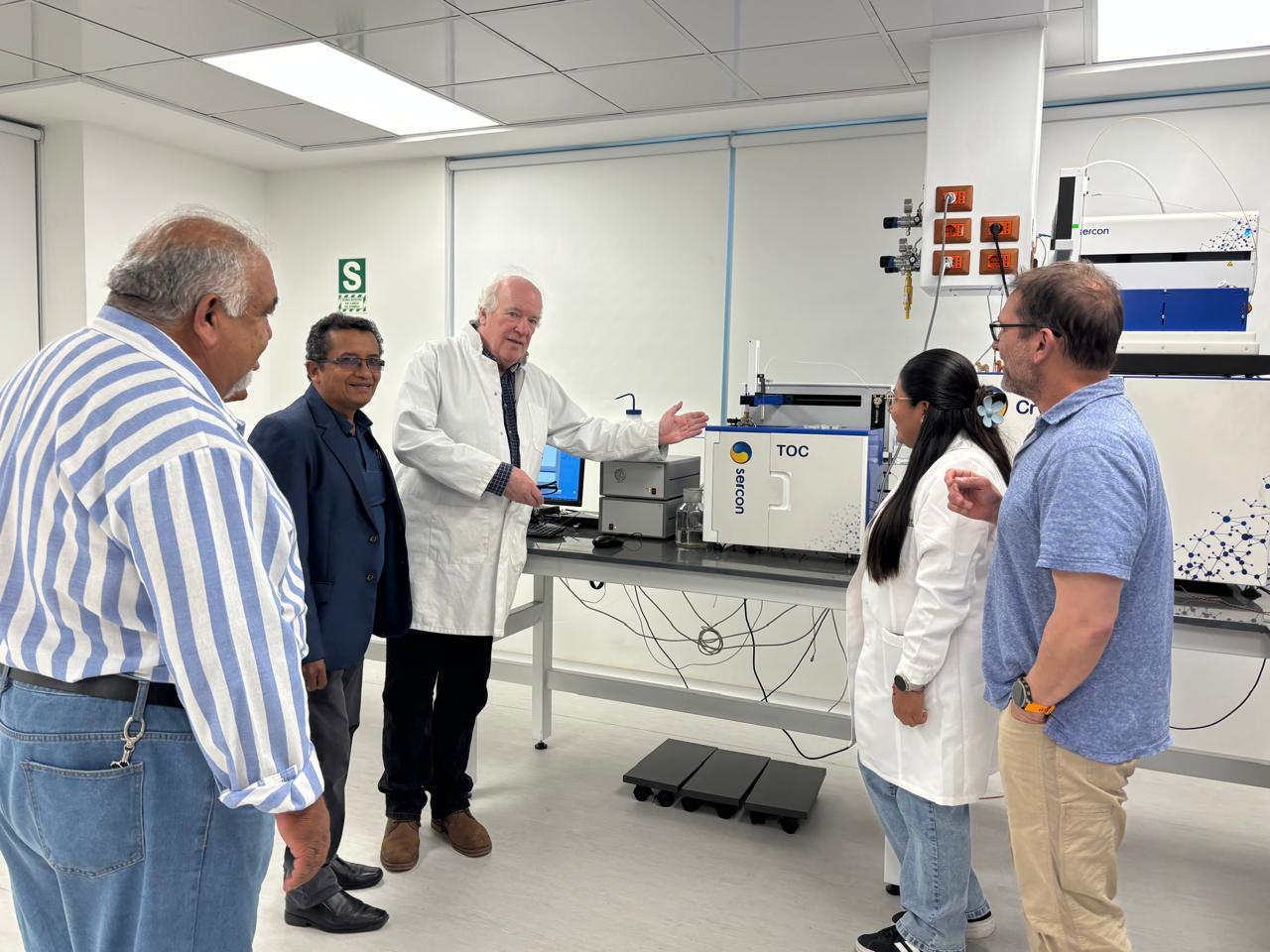 Recientemente, LABISOP recibió al Ing. Chris Perry, de Thermalox – Sercon (Reino Unido), y al Dr. Timothy R. Filley, de la Universidad de Oklahoma (OU), para instalar y testear la primera instrumentación en el Perú capaz de realizar, de manera simultánea y de alto flujo, la medición de concentraciones de nitrógeno total disuelto, así como la composición de isótopos estables de carbono y la concentración de carbono disuelto en aguas naturales, residuales y de procesos industriales.