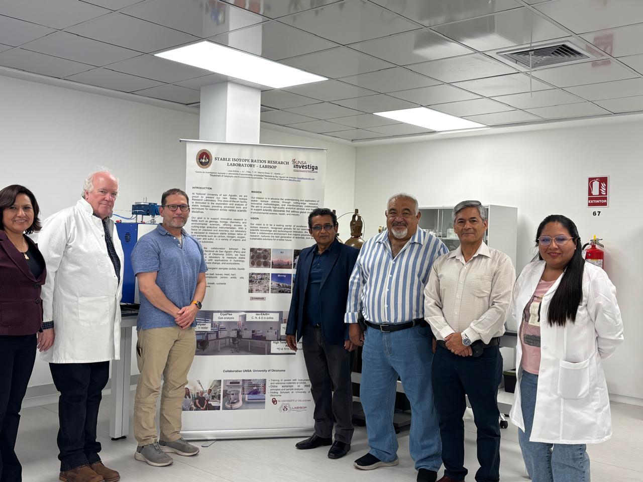 Los investigadores de la UNSA trabajan estrechamente con sus socios estadounidenses de la OU en un consorcio de laboratorios interuniversitarios, donde LABISOP ha unido fuerzas con la Stable Isotope Measurement Facility (SIMF) de la Universidad de Oklahoma. Esta alianza permite el libre intercambio de procedimientos operativos y estándares analíticos reconocidos internacionalmente; asimismo, facilita la recepción de personal y docentes de la UNSA para capacitación en el SIMF, y la acogida de docentes y personal de la OU en la UNSA para aplicaciones de investigación regional. En última instancia, este consorcio facilita el intercambio de tecnología y datos científicos de alta precisión. Este esfuerzo conjunto no solo fortalece las capacidades de la UNSA y la OU, sino que también posiciona a Arequipa como líder en Sudamérica para el estudio del cambio climático y la investigación en sostenibilidad ambiental.