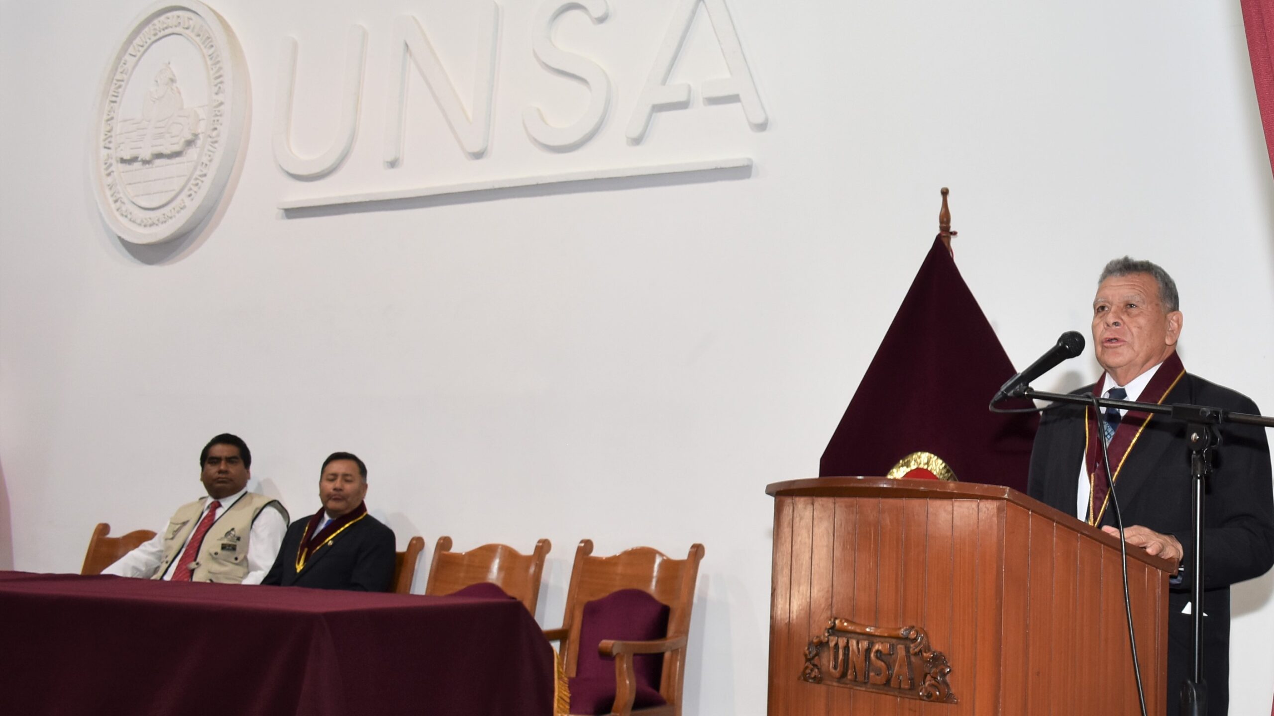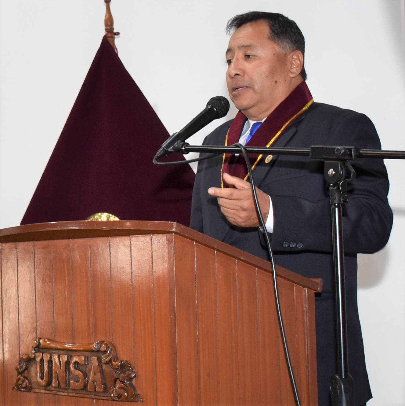 El Decano de la Facultad de Ciencias Histórico Sociales, Dr. Ariosto Carita Choquecahua, felicitó a los estudiantes y padres de familia por haber elegido estudiar en la UNSA, explicó que este símbolo del mandil blanco es el vínculo con su carrera y las especialidades que brinda la profesión.