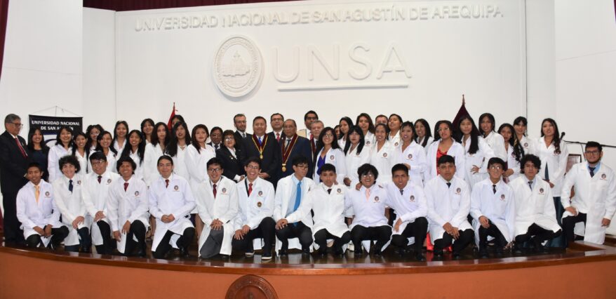 En ceremonia especial, estudiantes de los primeros años de la Escuela Profesional de Antropología de la Universidad Nacional de San Agustín de Arequipa (UNSA), recibieron de manos de familiares, padrinos o docentes la tradicional imposición de mandiles blancos.