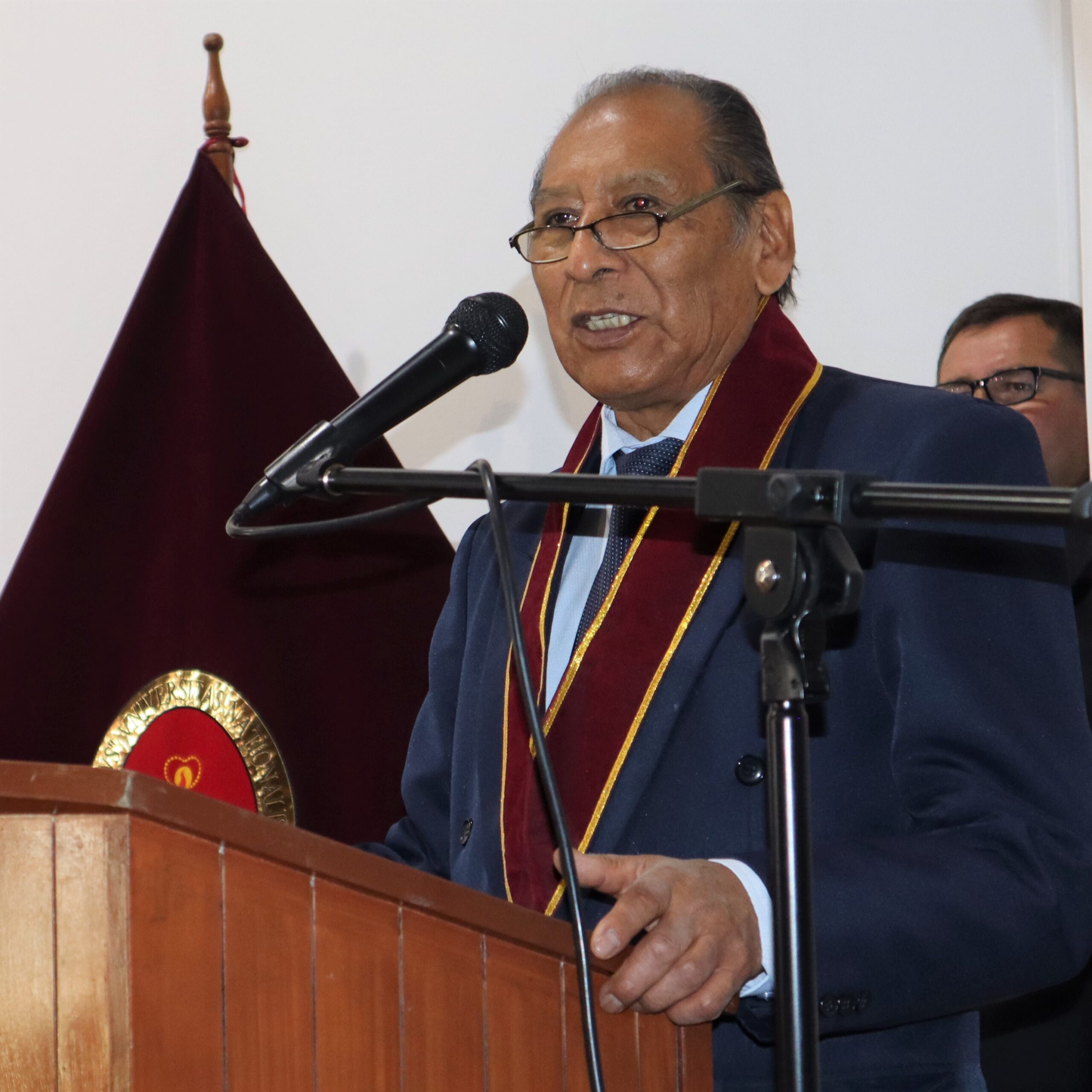 Motivó a los jóvenes que pongan dedicación, esfuerzo, estudio pleno y entrega total a la carrera y a los docentes responsabilidad para brindar una óptima formación profesional.