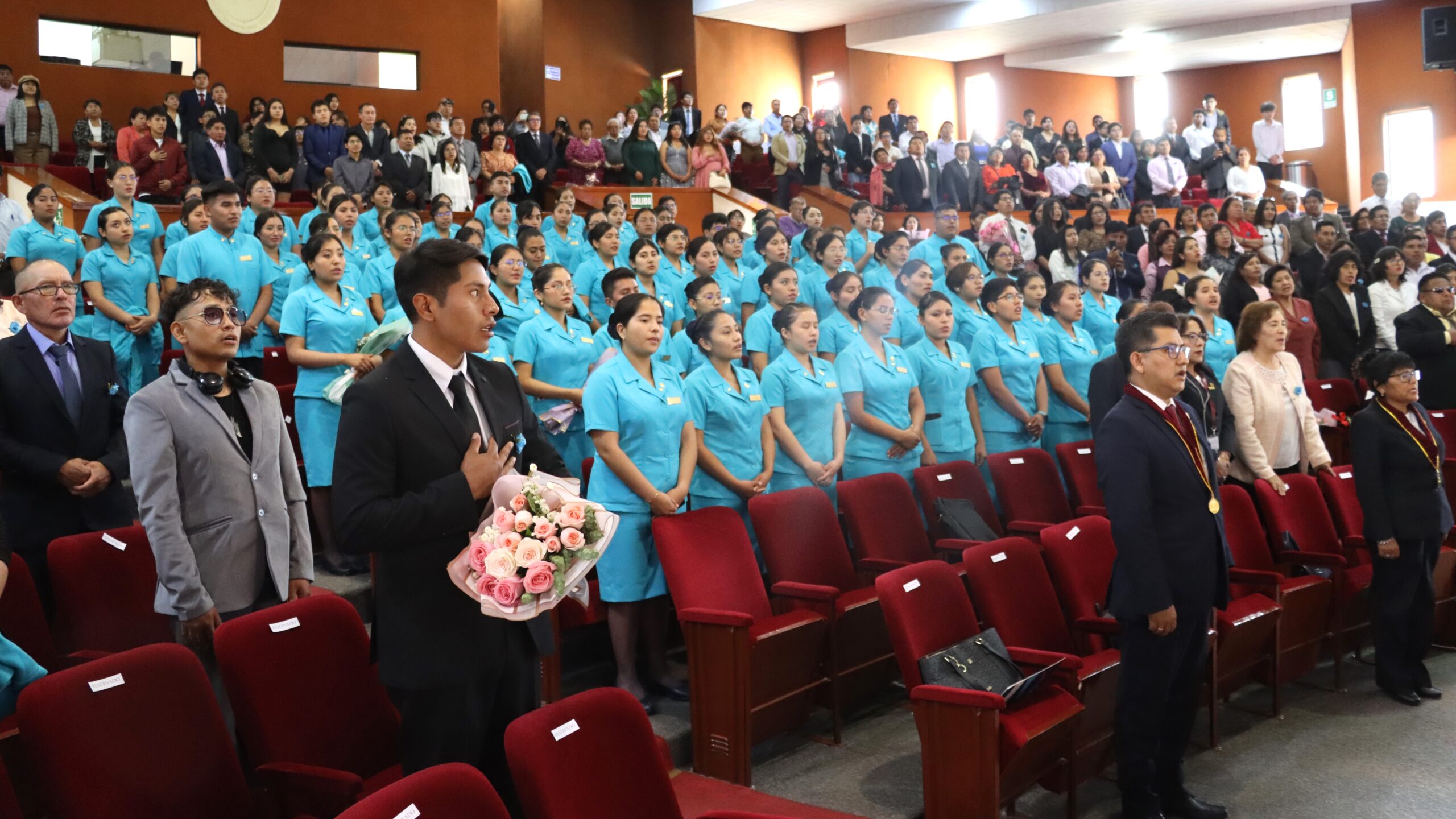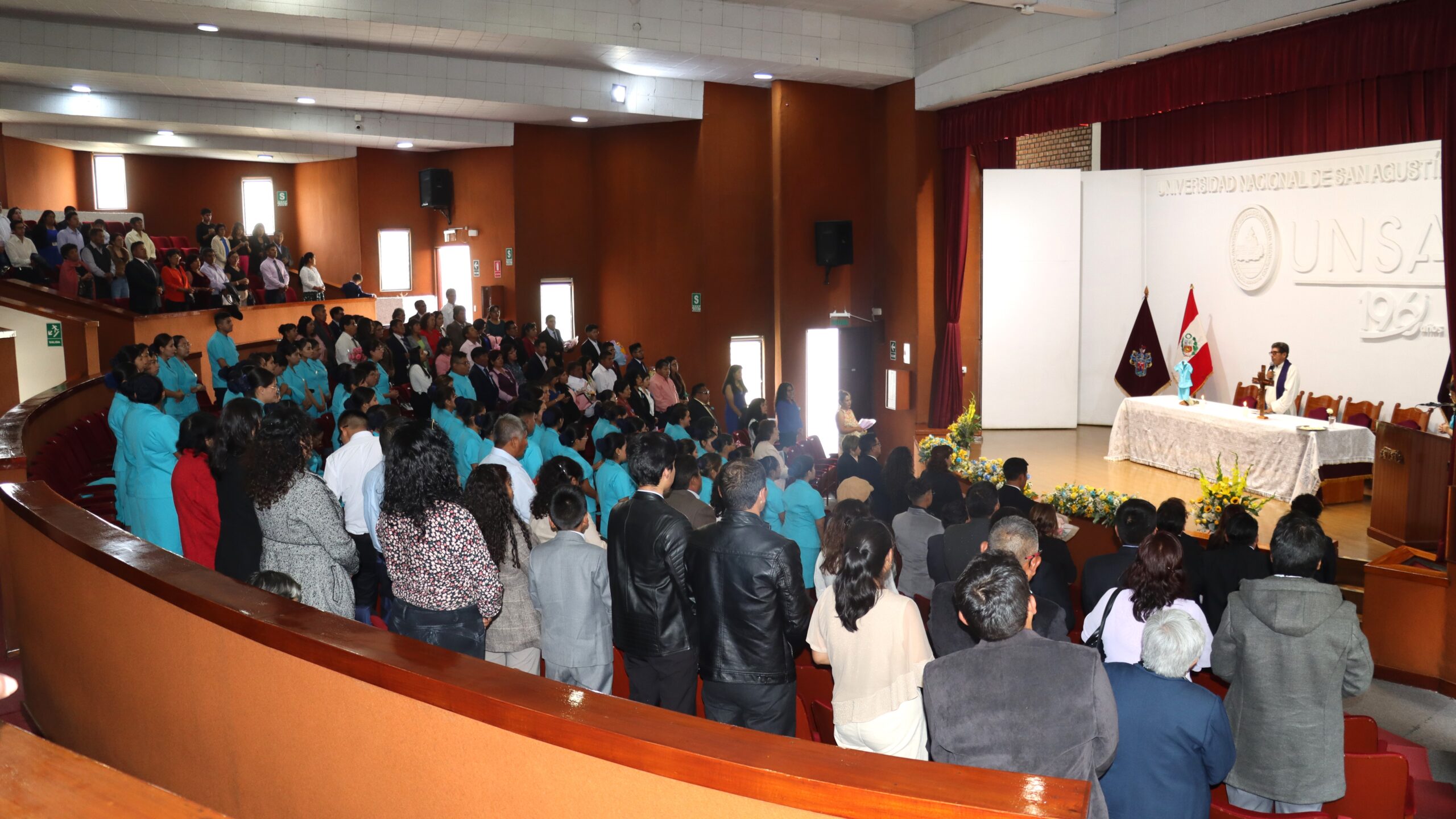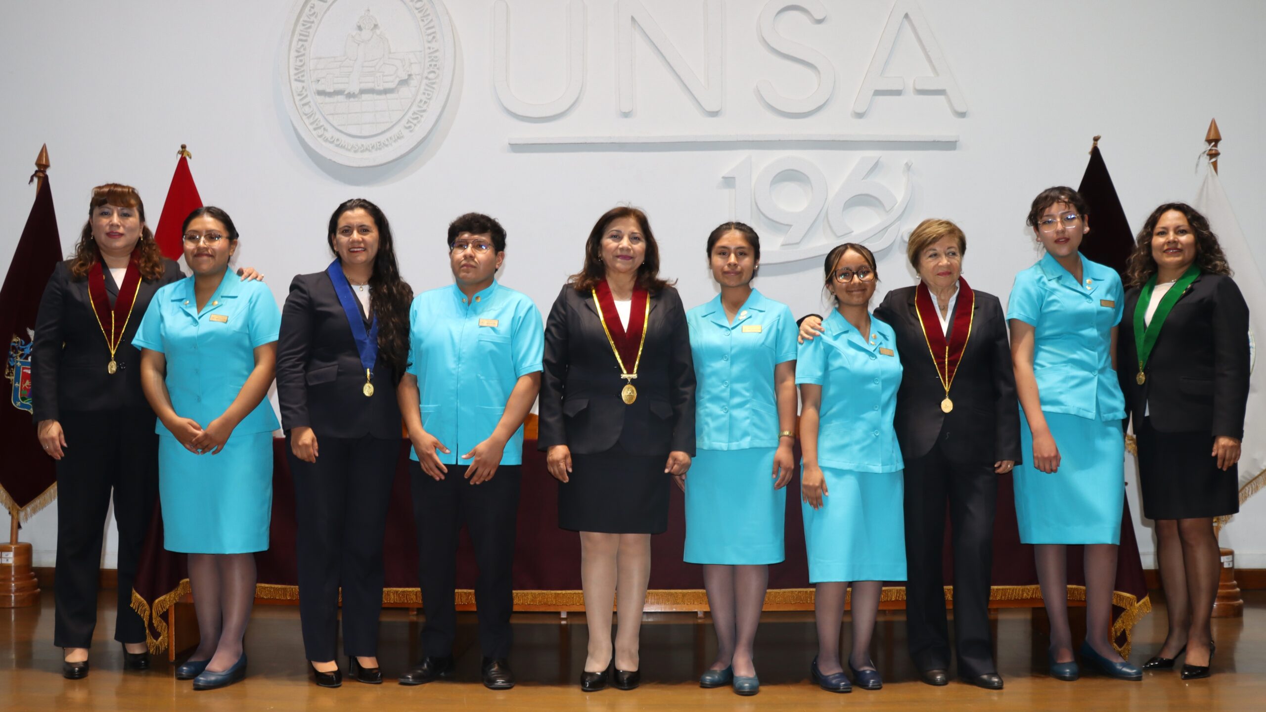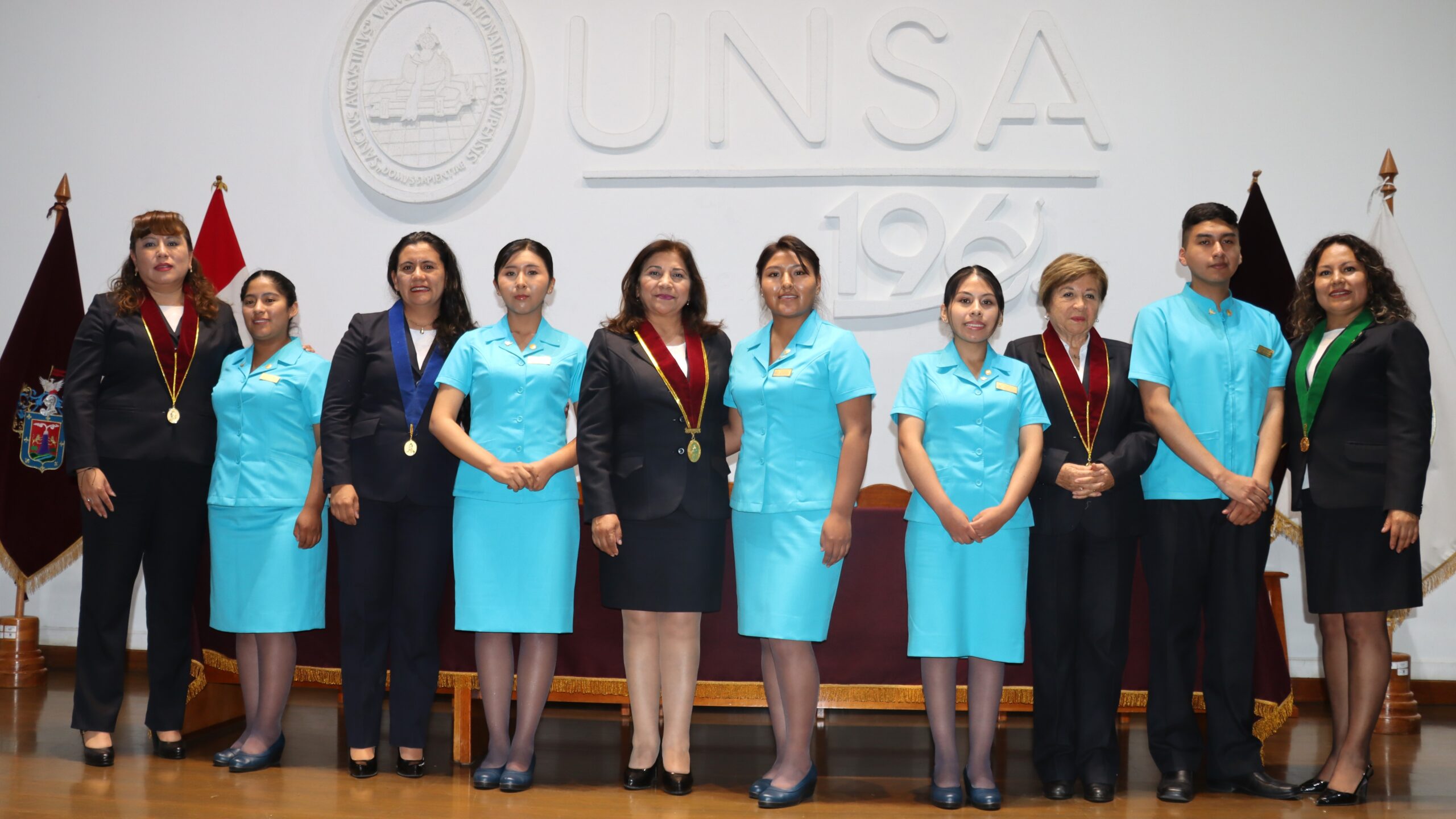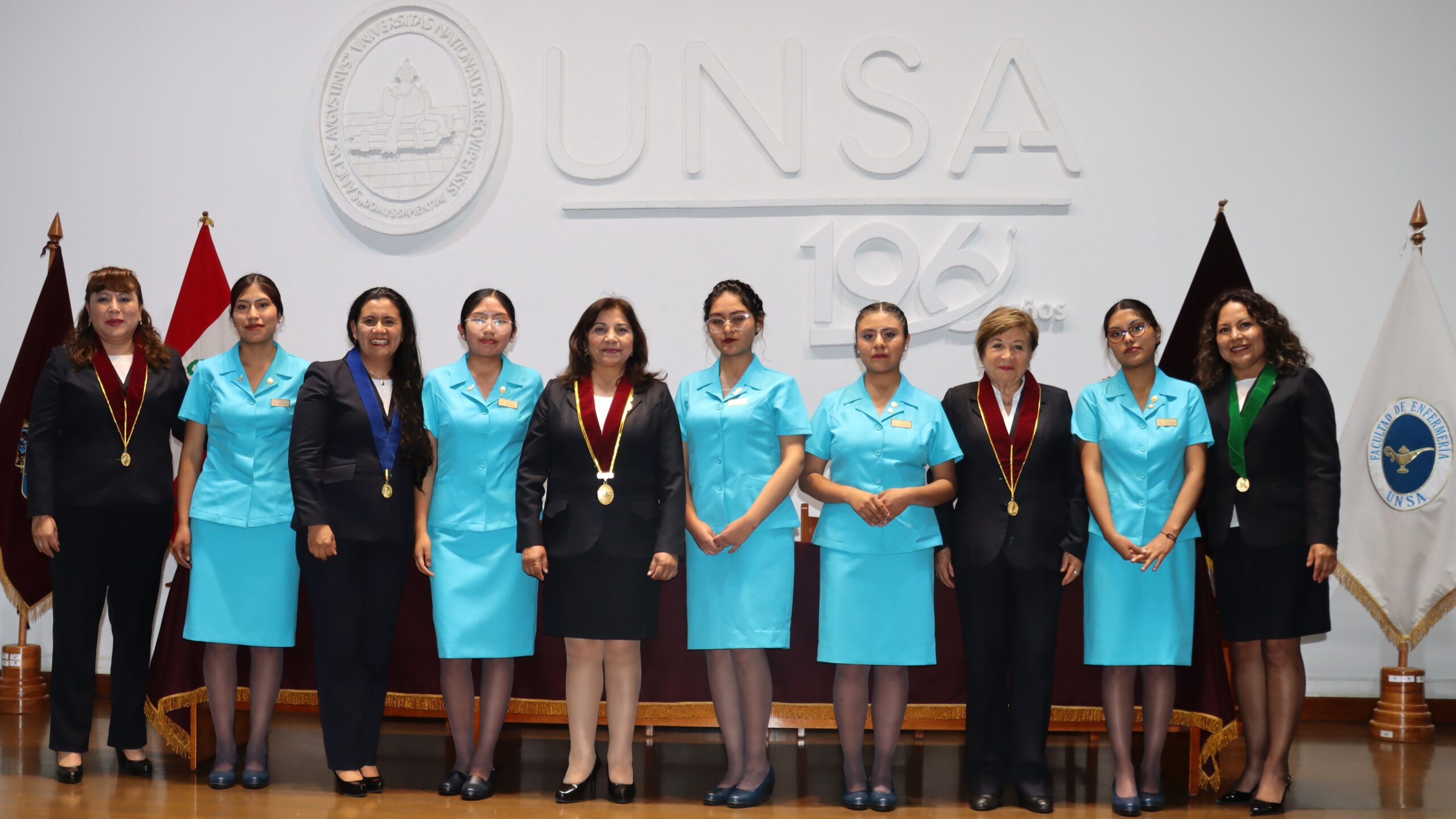 Inician su internado en hospitales y centros de salud de la región.En una emotiva ceremonia, los estudiantes de la Facultad de Enfermería de la Universidad Nacional de San Agustín de Arequipa (UNSA) recibieron el uniforme turquesa como símbolo del inicio de su internado en diferentes hospitales y centros de salud de la región, acto que también representa el cierre de un ciclo académico y el inicio de una nueva etapa llena de desafíos, pero también de grandes responsabilidades.