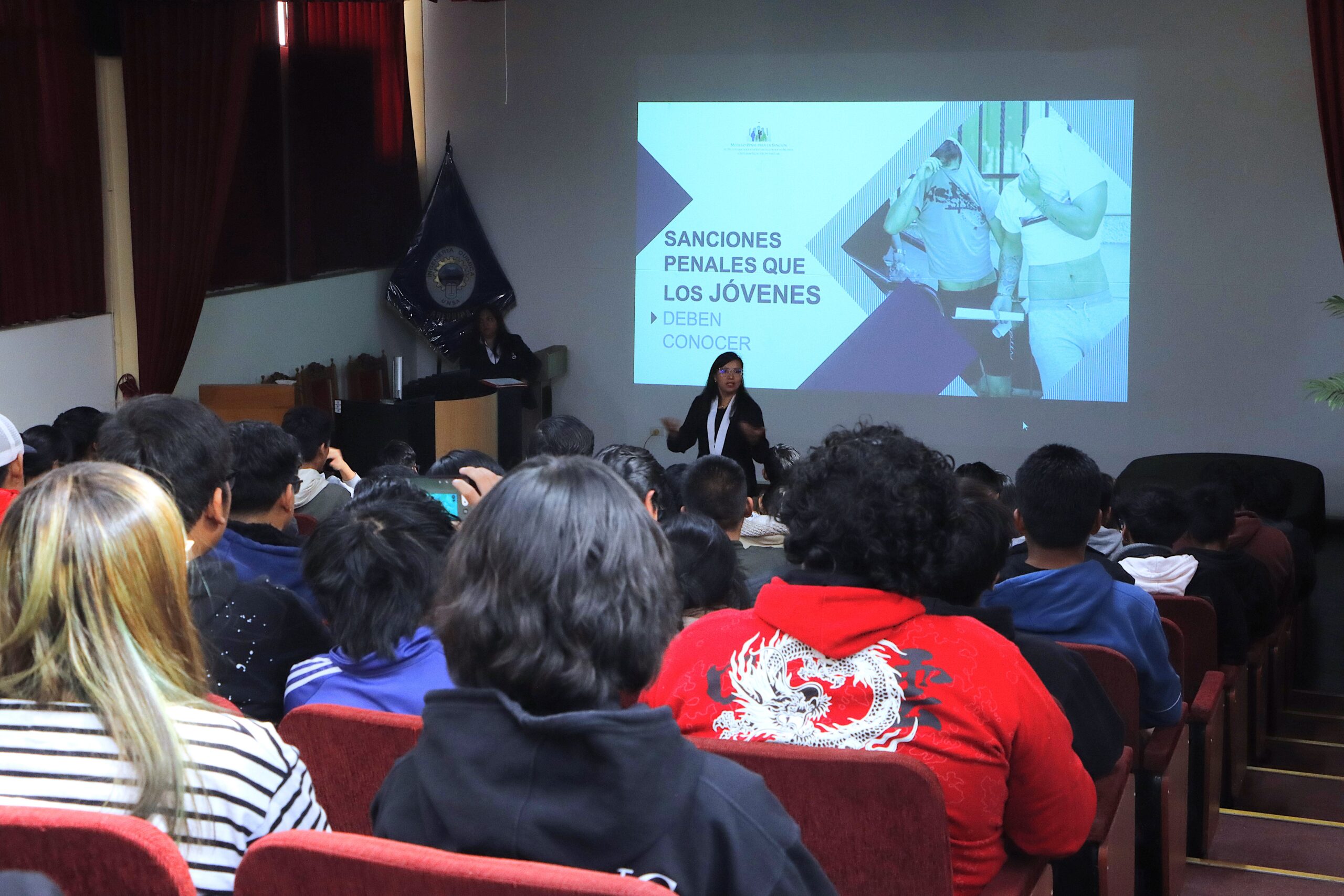 La charla “Sanciones penales que los jóvenes deben conocer” abordó temas como acoso, violación, chantaje sexual, y sus respectivas consecuencias legales. Los asistentes recibieron información sobre el procedimiento legal en estos casos y advertencias para afrontar actos de violencia.