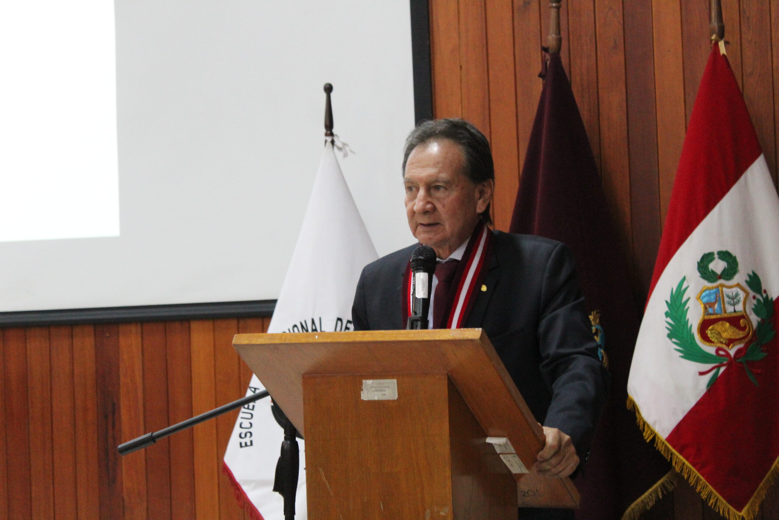 “La Ingeniería Electrónica es muy dinámica, está en la cresta del desarrollo de carácter científico y tecnológico, que tiene que ver con el desarrollo social y económico, por ello necesitamos de estrategias fundamentales para afrontarlos”, indicó el Dr. Luis Cuadros Paz.