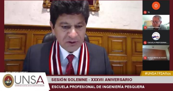 La sesión solemne por tan significativa fecha se realizó de manera virtual. El rector de la UNSA, Dr. Rohel Sánchez Sánchez, resaltó el trabajo en equipo de docentes, estudiantes y personal administrativo que dio como resultado la acreditación de este programa avalada por el SINEACE e ICACIT; reafirmó el apoyo de la Casa Agustina para las gestiones y mejoras en aras de brindar una formación de excelencia.