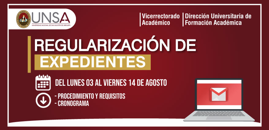 Los ingresantes a la Universidad Nacional de San Agustín de Arequipa de los procesos de Admisión: Ordinario II Fase y Filiales 2020, deben presentar documentos a través del correo electrónico regularizacionexpedientes@unsa.edu.pe desde el lunes 3 hasta el viernes 14 de agosto según cronograma por letra de apellido paterno.