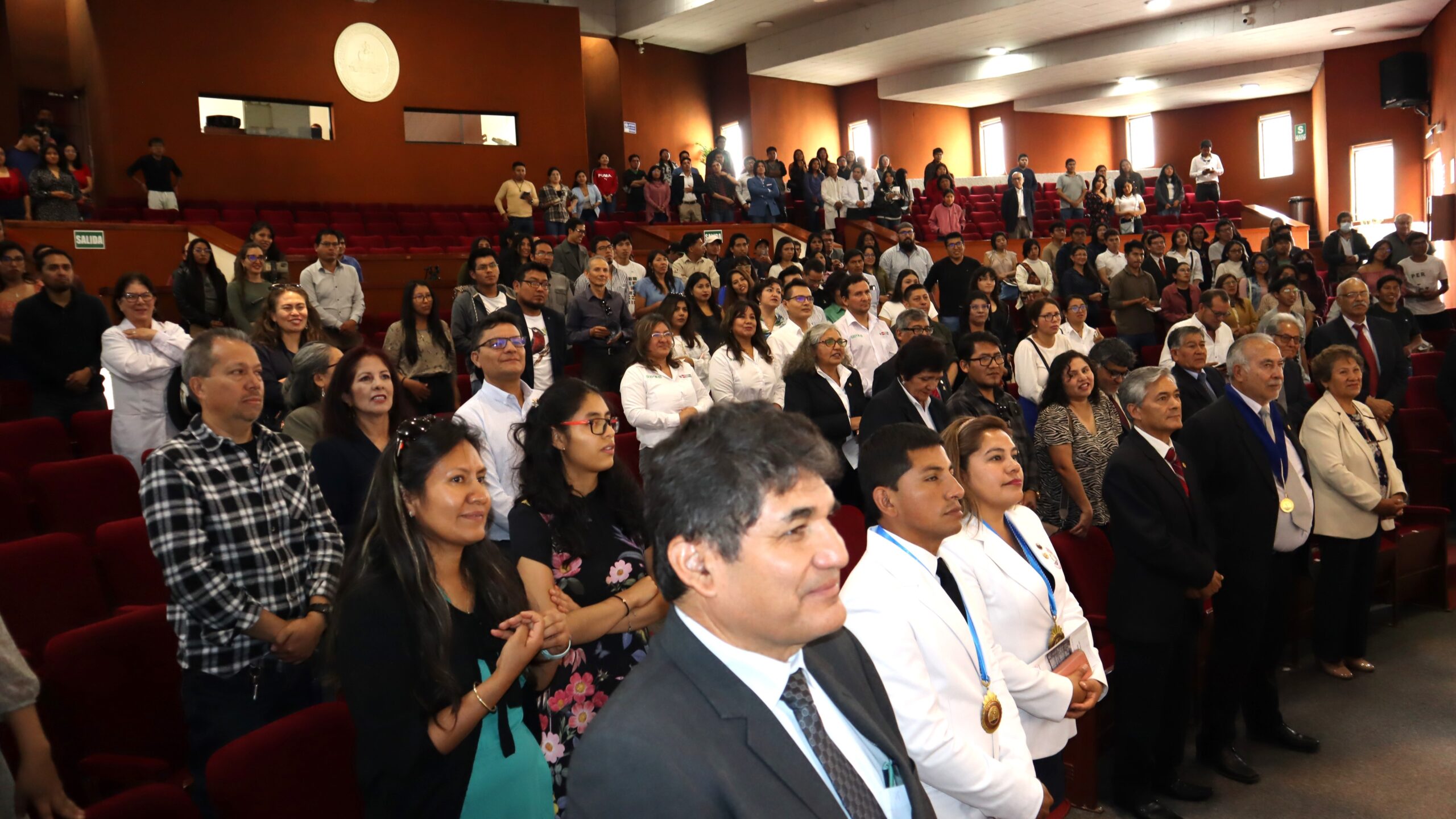 Representantes de instituciones gubernamentales y privadas, colegas, estudiantes y egresados, se dieron cita en el Aula Magna Simón Bolívar de la casa agustina para participar del acto protocolar que duró más de dos horas, en la que agradecieron su compromiso y entrega en la formación de profesionales biólogos, quienes en la actualidad ocupan importantes cargos a nivel nacional e internacional en empresas privadas como públicas.