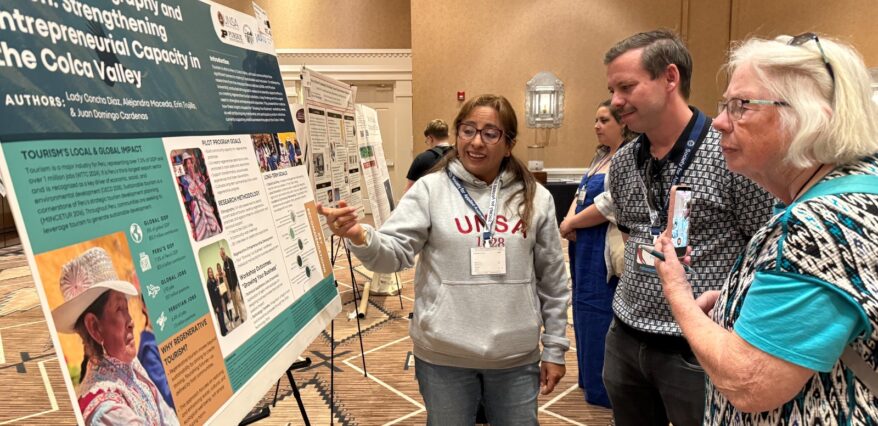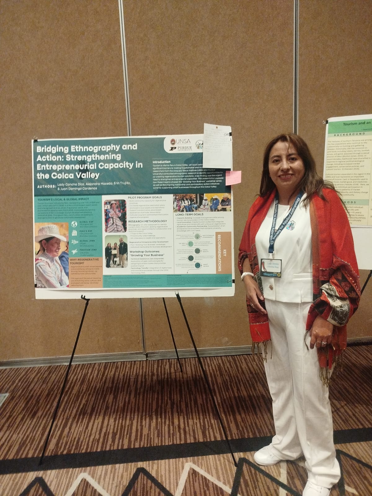 Durante el evento, Ph.D. Sarah R. Renkert, del Departamento de antropologia de Universidad de Purdue, y Lady Shirley Concha Diaz ,Ph.D. Candidata en Ciencias Sociales, de la Escuela Profesional de Turismo y Hoteleria de la Universidad Naciona lde San Agustin presentaron la ponencia “Reimaginar el turismo en el Valle del Colca: aspiraciones regenerativas a la sombra del turismo masivo” y junto al apoyo del equipo académico.