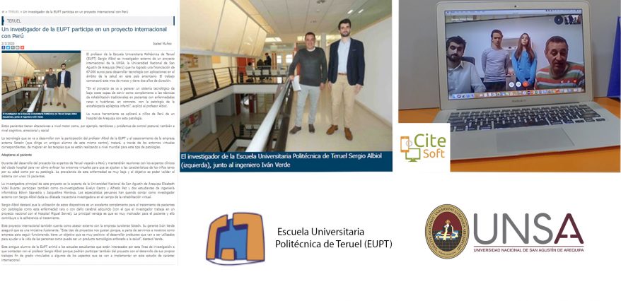 El medio virtual Diario de TERUEL de España publicó sobre el proyecto de investigación «Sistema de Rehabilitación Virtual (RV) de la mejoría a nivel motor y cognitivo en niños con Encefalopatía Epiléptica. CEPIVIRT». Un sistema tecnológico de bajo coste capaz de servir como complemento a las técnicas de rehabilitación tradicionales en pacientes con enfermedades raras o huérfanas, investigación desarrollada por la Universidad Nacional San Agustín de Arequipa a través de CITESOFT con la colaboración del Investigador externo Sergio Albiol y el asesoramiento de la empresa externa Soteón.