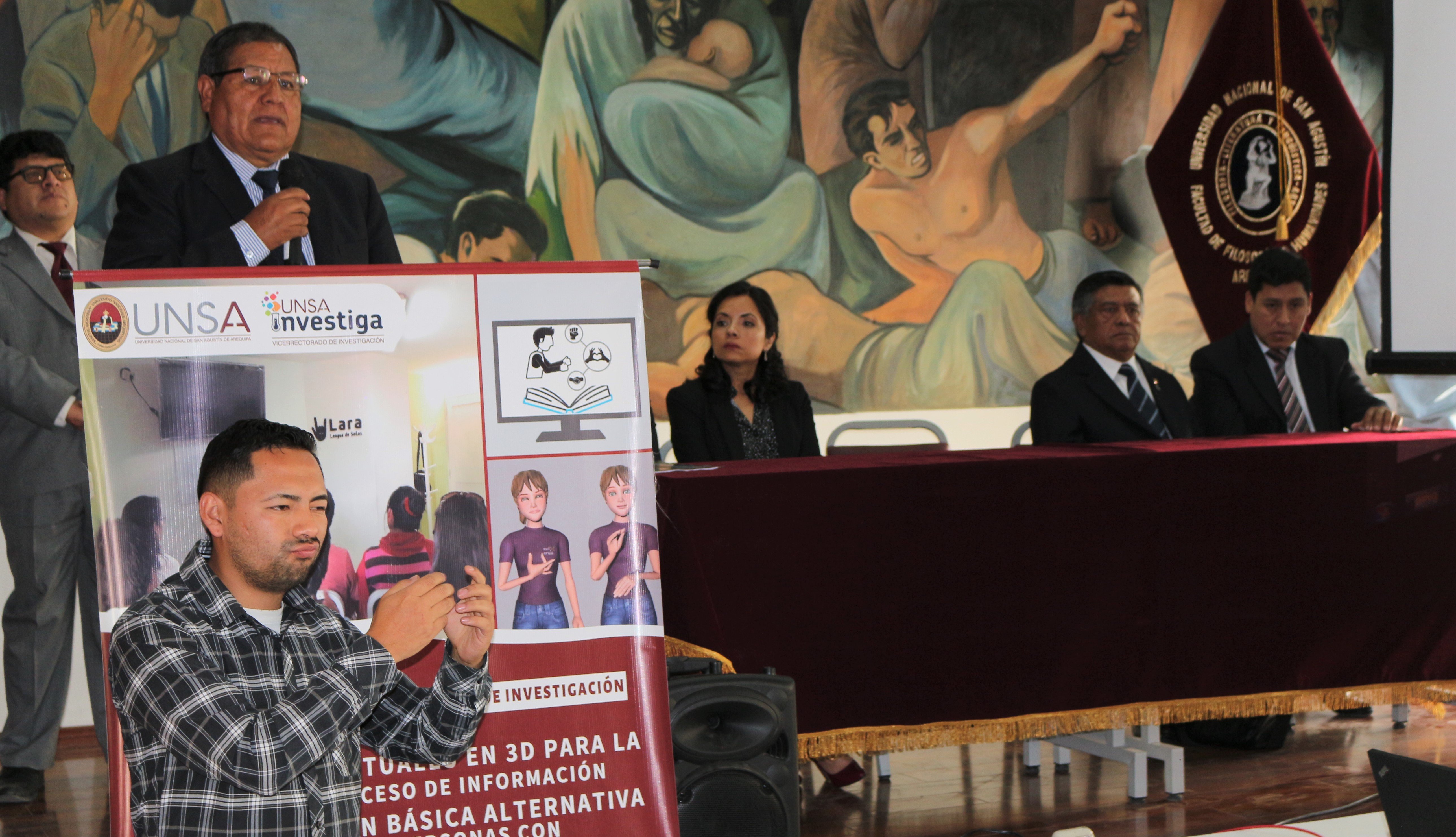 Un equipo de investigadores de la Universidad Nacional de San Agustín de Arequipa presentó el proyecto de investigación “Asistentes virtuales en 3D para la mejora del acceso de información en la Educación Básica Alternativa enfocado a personas con discapacidad auditiva en la provincia de Arequipa”, que busca mejorar las condiciones de vida para la de personas que no oyen.