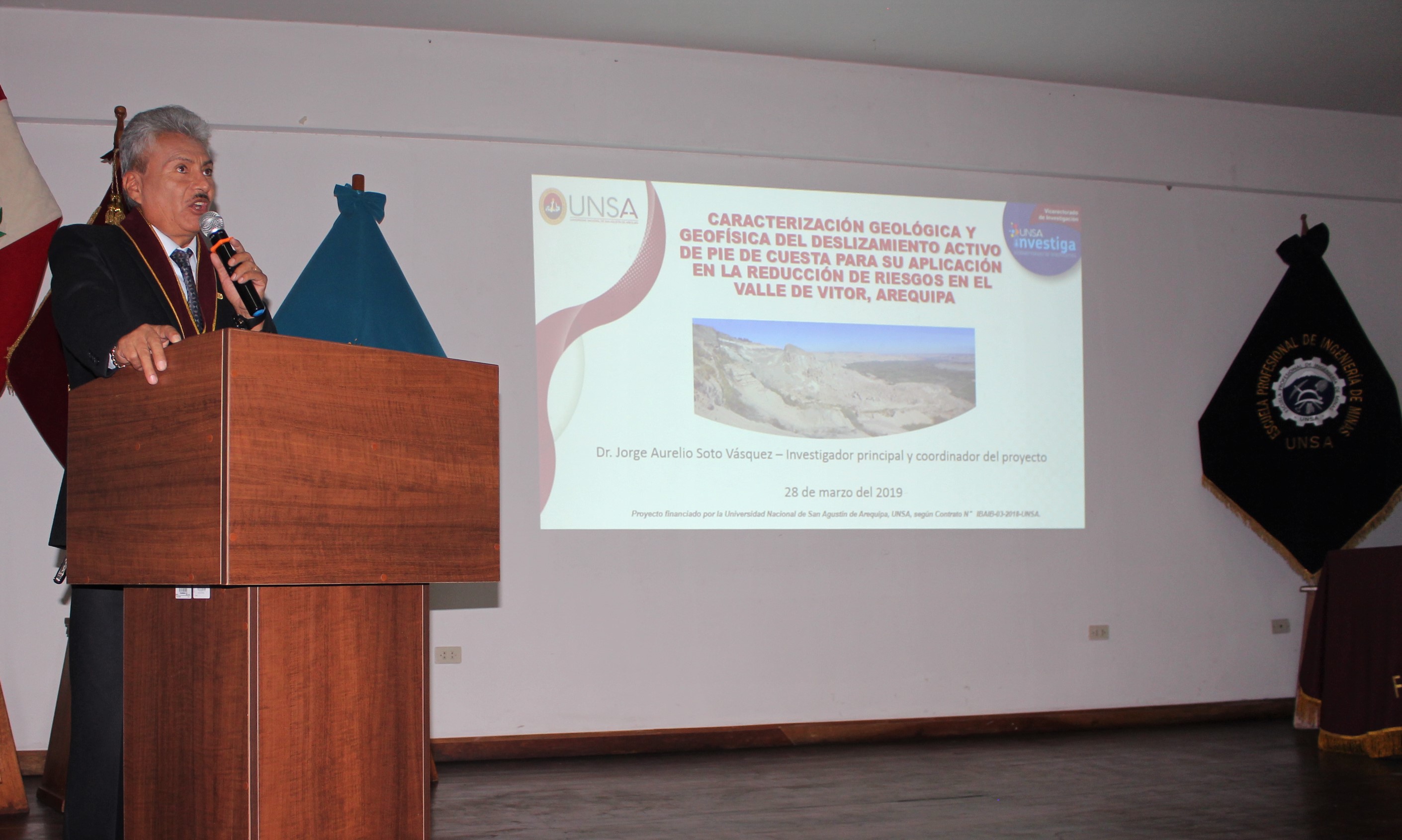 Un equipo de investigadores de la Universidad Nacional de San Agustín de Arequip a presentó el proyecto “Caracterización geológica y geofísica del deslizamiento activo de pie de cuesta para su aplicación en la reducción de riesgos en el valle de Vítor, Arequipa”, investigación financiada con 250 mil soles por el programa UNSA Investiga a ejecutarse en 18 meses.