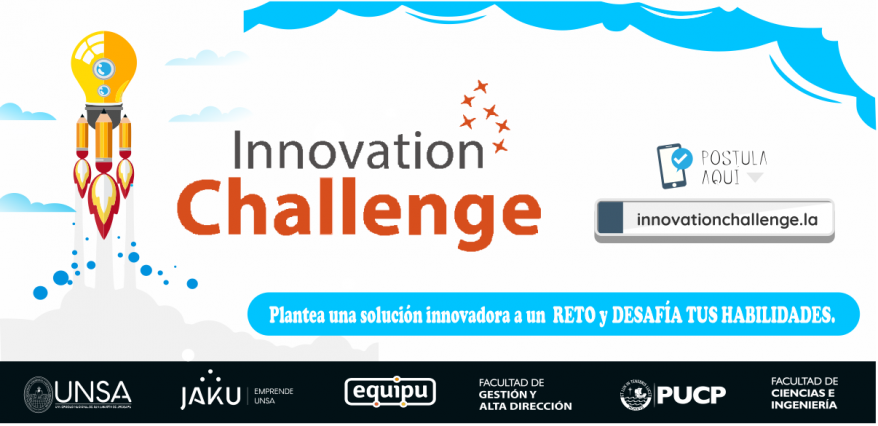 La Oficina de Desarrollo del Emprendedurismos de la Universidad Nacional de San Agustín de Arequipa a través de su Incubadora de Negocios Jaku Emprende UNSA, hace extensiva la invitación de Equipu, red de emprendedores de la Pontificia Universidad Católica del Perú – PUCP para que participen en el Programa Innovation Challenge, concurso interuniversitario que impulsa el fortalecimiento de la cultura de emprendimiento e innovación; y la formación de equipos multidisciplinarios que deberán proponer soluciones creativas al desafío planteado, este año se enfoca al sector Turismo, el mismo que se realizará de manera virtual.