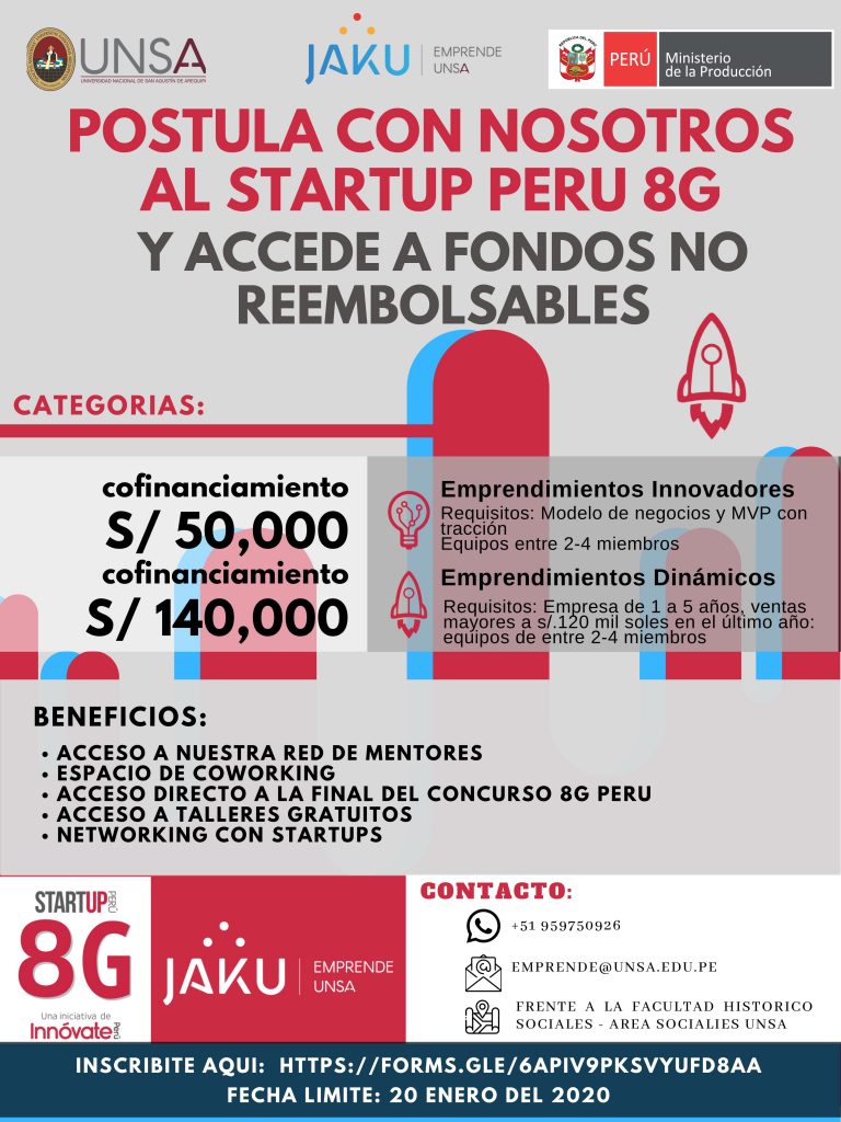 POSTULA CON NOSOTROS AL STARTUP PERU 8G