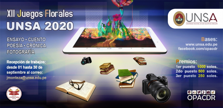 Los “XII Juegos Florales UNSA 2020” es organizado por la Oficina de Promoción de Arte, Cultura, Deporte y Recreación, a través de su Unidad de Literatura.