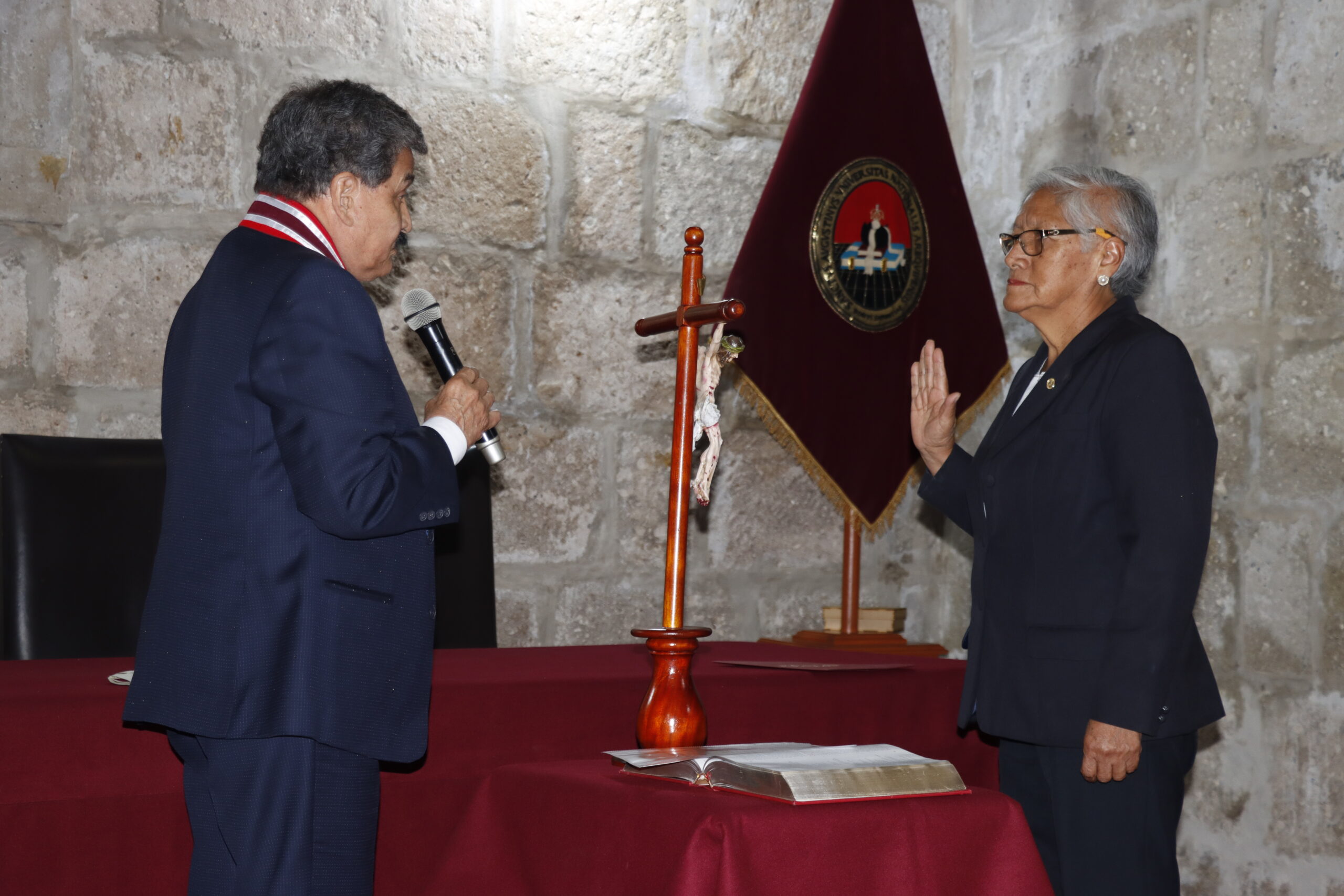 Fue el rector de la UNSA, Dr. Hugo Rojas Flores, el encargado de prestar juramento a la nueva presidenta del comité, la Mag. Felicitas Bina Ramírez de Ojeda, docente principal de la Facultad de Enfermería con más de 35 años de experiencia en la docencia universitaria.