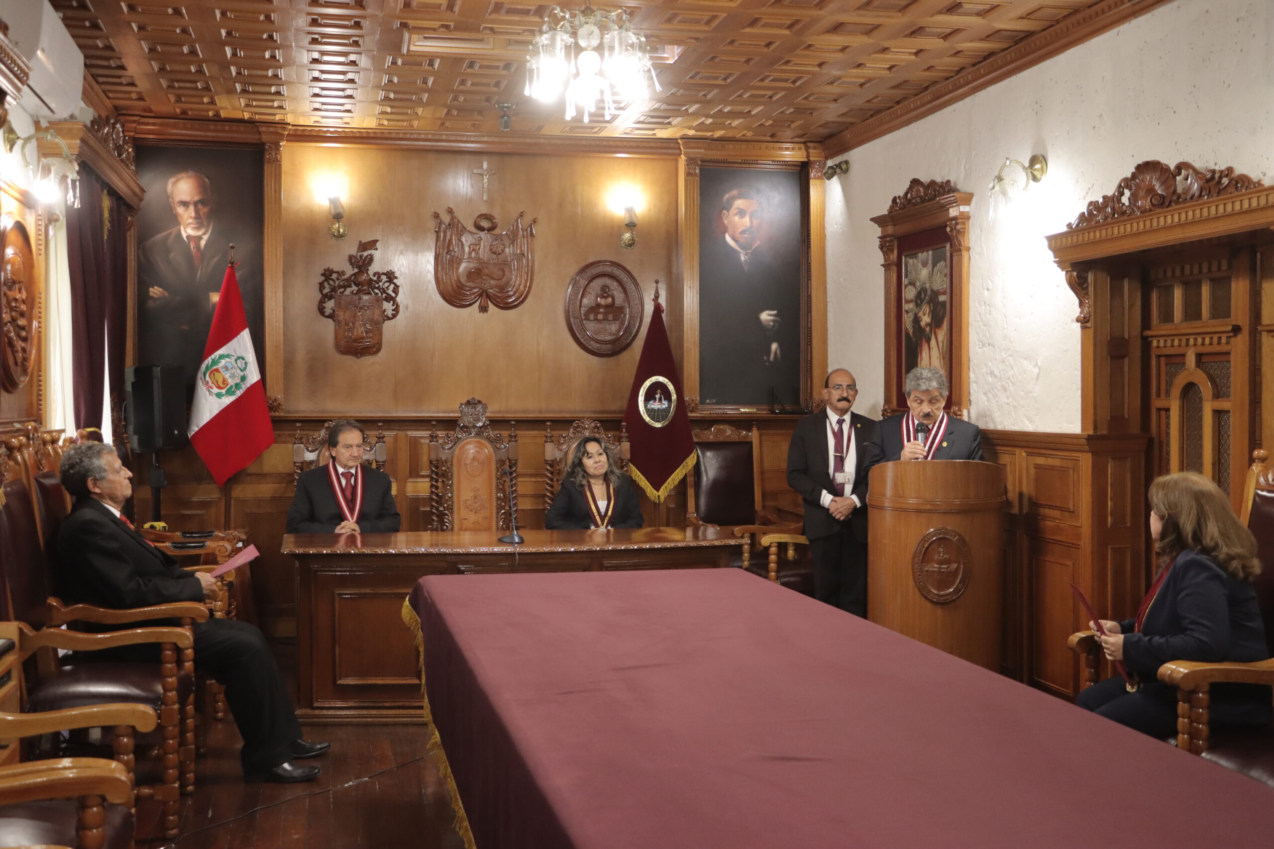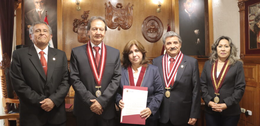 La sala de sesiones del rectorado de la Universidad Nacional de San Agustín de Arequipa (UNSA) fue el escenario de la ceremonia de acreditación y juramentación de la doctora Martha Escobar Ávila Concha de Valdés, flamante Directora del Departamento Académico de Pediatría de la Facultad de Medicina. El evento reunió a las autoridades universitarias y miembros del comité electoral, quienes celebraron este importante acontecimiento para la comunidad académica.