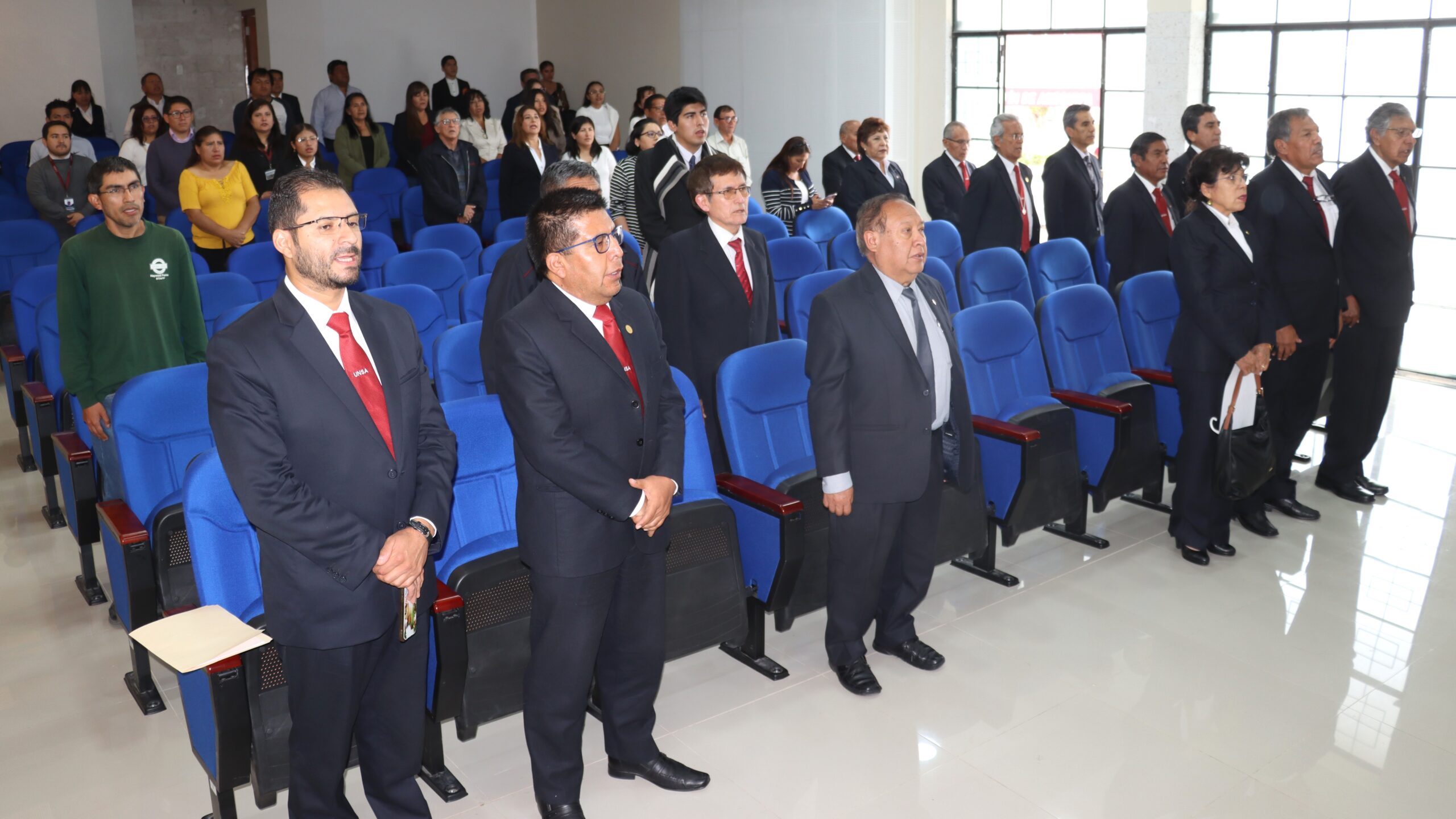 El acto conmemorativo contó con la participación de miembros destacados de la comunidad académica. El discurso de orden fue pronunciado por la docente Maestra Martha Postigo Zúñiga, mientras que la lectura del acta de creación de la escuela estuvo a cargo del docente Mg. Marco Antonio Castelo Jara. Además, Franco Arellano Baraya, representante estudiantil, brindó un emotivo