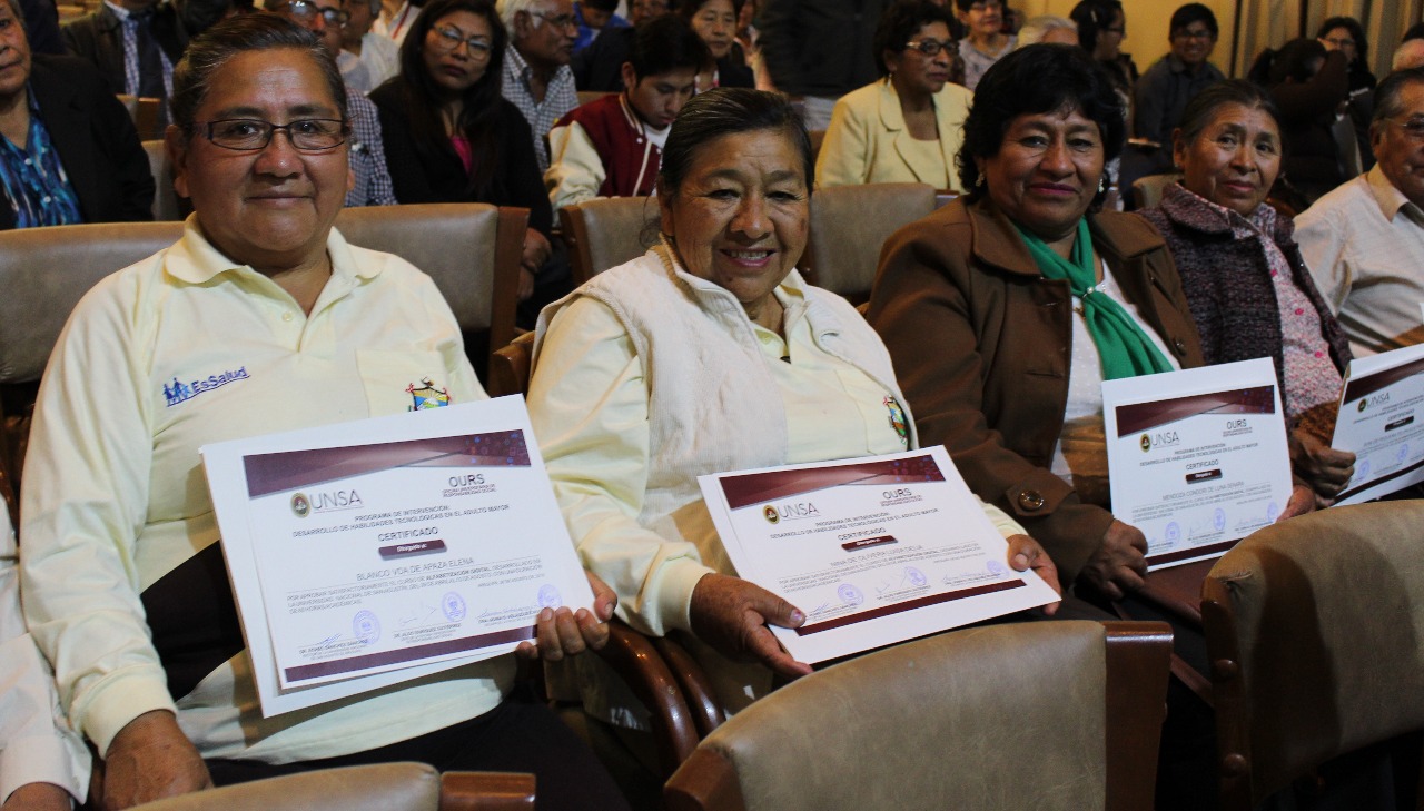 En una emotiva ceremonia presidida por el Dr. Rohel Sánchez Sánchez, Rector de la Universidad Nacional de San Agustín de Arequipa y Presidente de la Mesa de Concertación del Adulto Mayor por segundo período consecutivo, se llevó a cabo la clausura del Curso de Tecnologías de la Información para el adulto mayor.