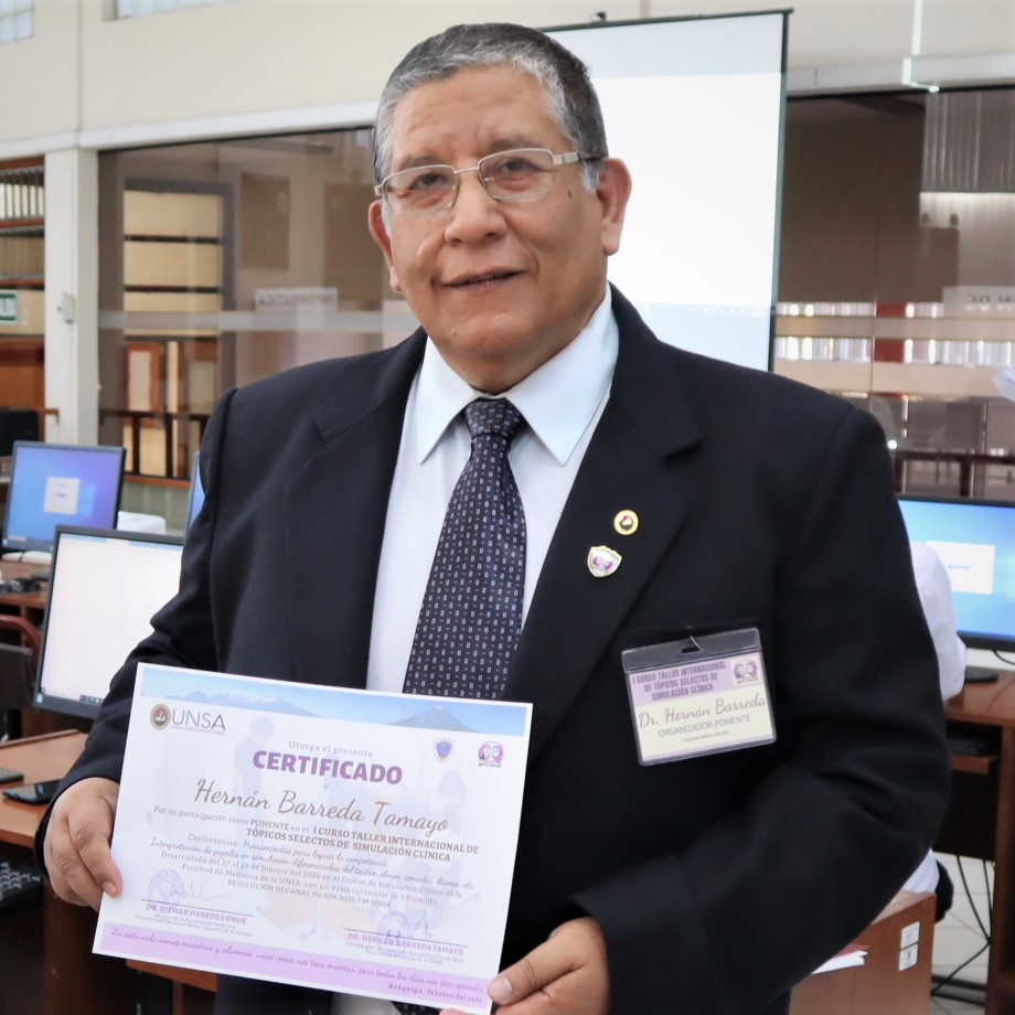 El Dr. Hernán Barreda Tamayo, Coordinador del Centro, mencionó que esta oportunidad es propicia para dar a conocer parte las experiencias adquiridas en las diferentes actividades académicas que se han desarrollado desde el 2018 que se inauguró este moderno Centro de Simulación Clínica, que en un futuro se implementaría hasta lograr un “Hospital virtual”.