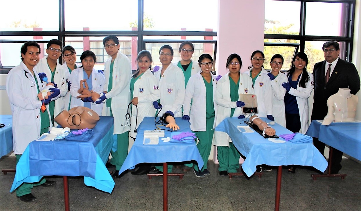 Por su parte el Decano de la Facultad de Medicina Dr. Hugo Rojas Flores, agradeció a las autoridades por el apoyo brindado en la implementación de este moderno centro que los pone a la vanguardia en el uso de este recurso fundamental en el avance de la educación médica, explicó que hay resistencia en los pacientes para la práctica de los estudiantes, por lo que estos simuladores permitirán hacer varias intervenciones como: entubar, tomar la presión, atender partos, paros cardiacos y otras simulaciones como un paciente real. Mencionó además que en este Centro de implantación para la enseñanza médica, se puede realizar investigación; los maniquís pueden ser manipulados para simular cuadros clínicos como arritmias cardiacas, complicaciones de partos entre otros. El Decano anunció que próximamente se inaugurarán los módulos para las mesas de simulación y centro de plastificación de cadáveres para su conservación por tiempo indefinido, además detalló que están a la espera de la llegada de 4 cadáveres importados de EE. UU.