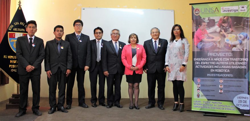 Docentes y estudiantes de la Universidad Nacional de San Agustín de Arequipa, presentaron el Proyecto de Investigación “Enseñanza a niños con trastornes del espectro autista utilizando actividades inclusivas basadas en robótica”, estudio financiado por UNSA investiga que promueve el Vicerrectorado de Investigación de esta casa superior de estudios con una inversión de 250 mil soles.
