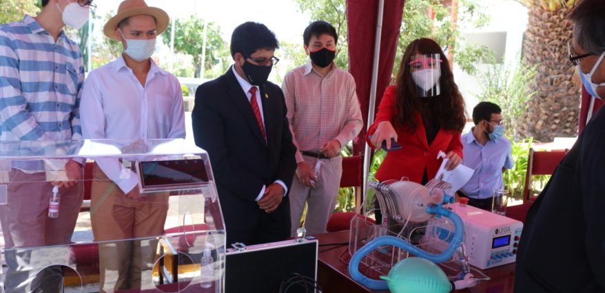 Investigadores de la UNSA también presentaron un ventilador mecánico. Este modelo tiene sensores y micro controladores que analizan ciertos factores y permiten monitorizar la mecánica del pulmón; tiene alarmas que detectan situaciones de riesgo como desconexión del circuito o que suba la presión por encima de los rangos establecidos. Este equipo ha sido validado en los simuladores de alta fidelidad de los laboratorios de la Facultad de Medicina precisó la Dra. Evelyng Castro, investigadora e impulsora de los proyectos.