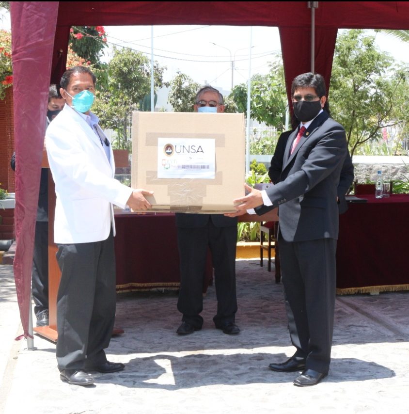 El Dr. Rohel Sánchez Sánchez, rector de la UNSA, precisó que desde que se inició la emergencia sanitaria por el COVID 19, la Universidad puso a disposición de la comunidad, su infraestructura, laboratorios e investigadores; la entrega de estos equipos, validados y con las certificaciones correspondientes, es una muestra de ello.